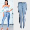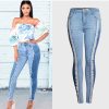 These women’s patchwork jeans are the perfect way to add some style to your look. The jeans are made from a stretchy denim material that is comfortable to wear and ensures a great fit. They feature a skinny leg design with a pencil leg silhouette that is perfect for showing off your curves. The jeans are finished with a classic five-pocket design and a button-up fly.
