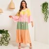 Summer Women Dress Multicolor Stitching Flared Long Sleeves Sashes Belted Bohemian Holiday Casual Elegant Maxi Dresses - Image 4
