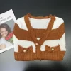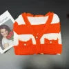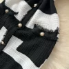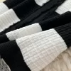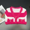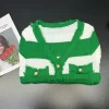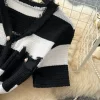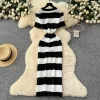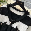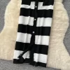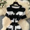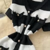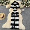 2025 Spring Summer Knit Striped V Neck Empire Waist Mid Calf Dress