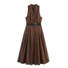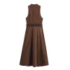2025 Summer Womens V Neck Sleeveless A Line Belted Casual Dress