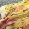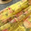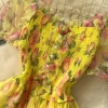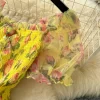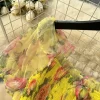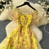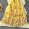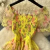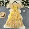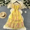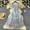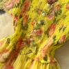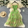Autumn Floral Slash Neck Puff Sleeve A Line Chiffon Dress