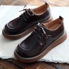 Sneakers Women Genuine Cow Leather Round Toe Lace-Up Ladies Retro Casual Flat Shoes Handmade Loafers