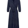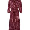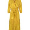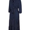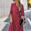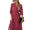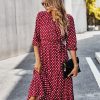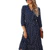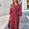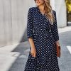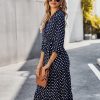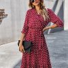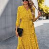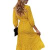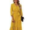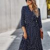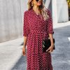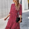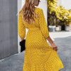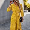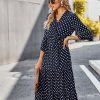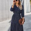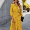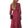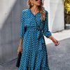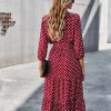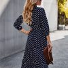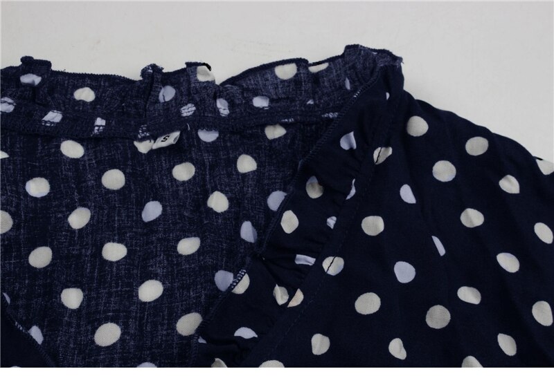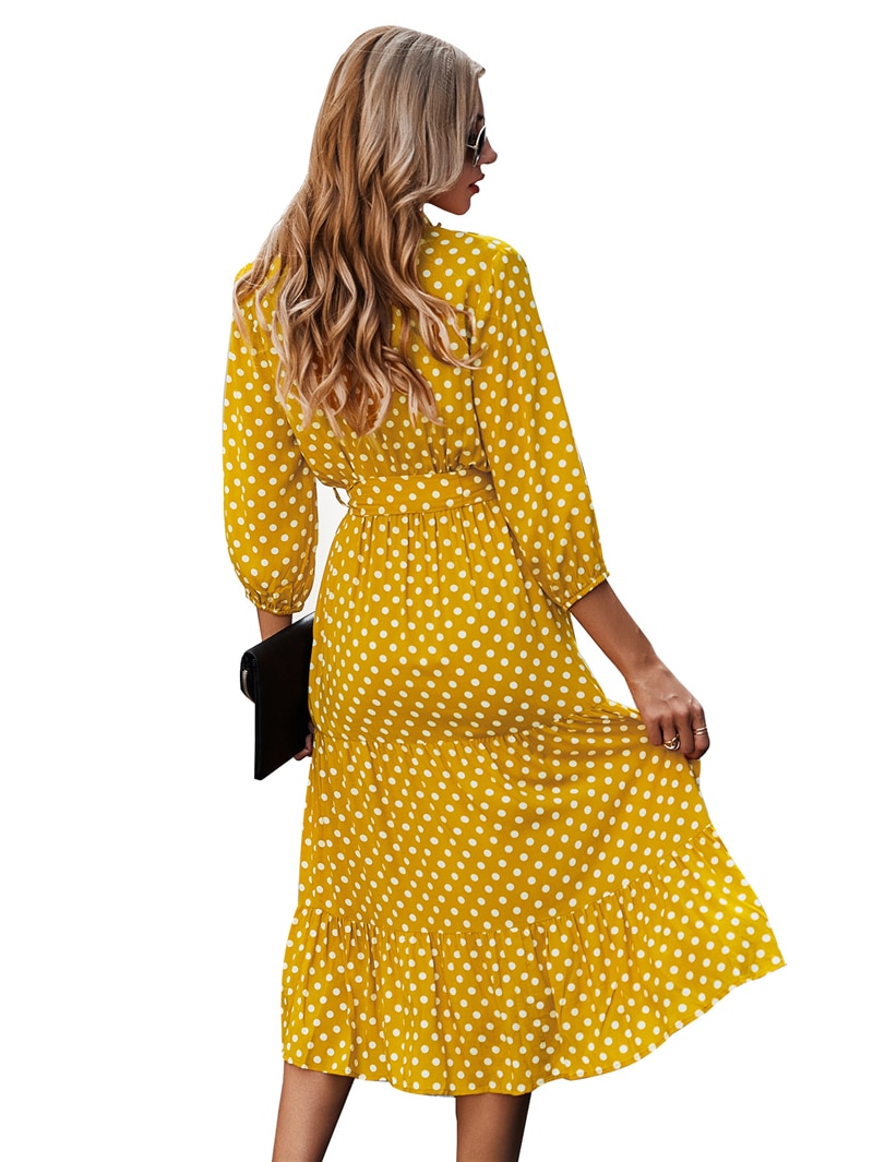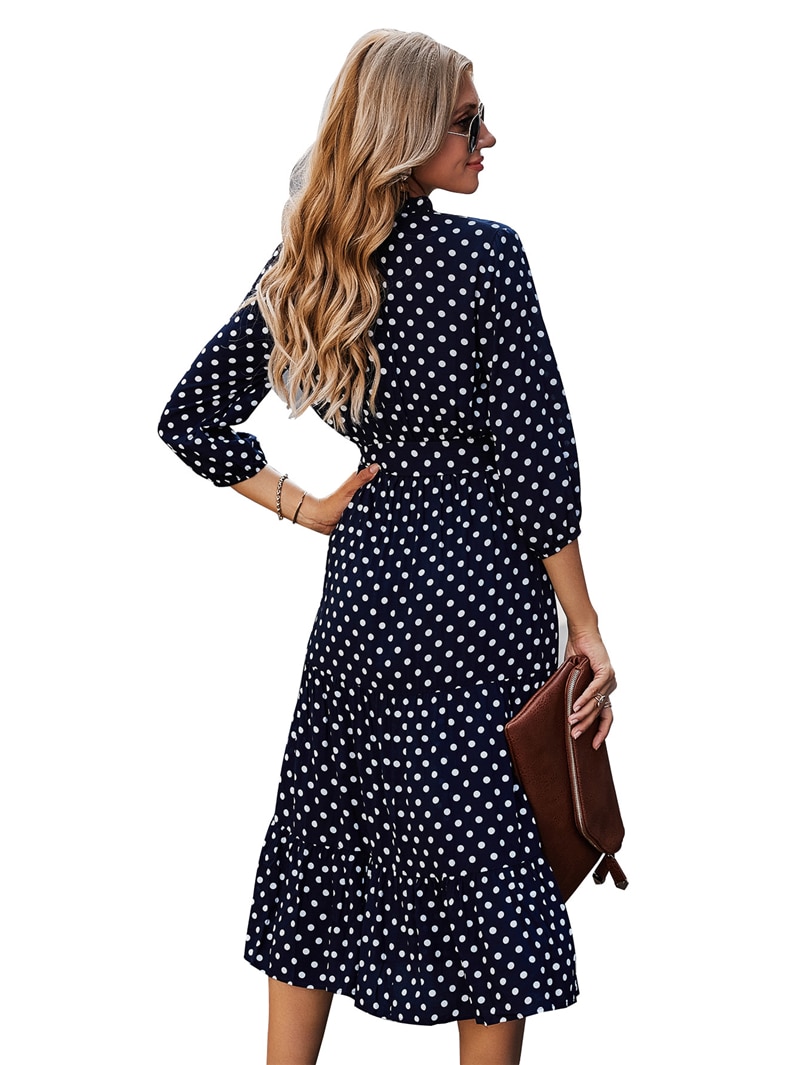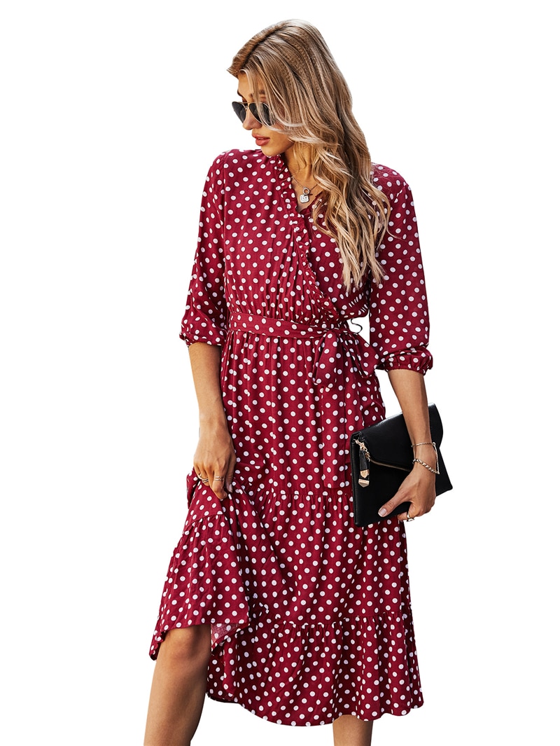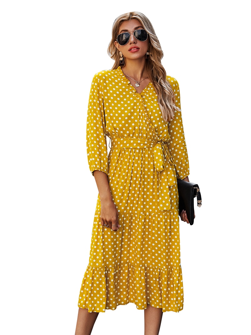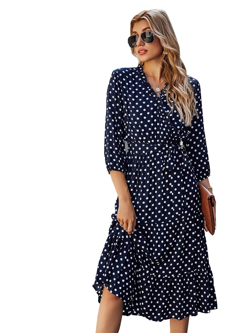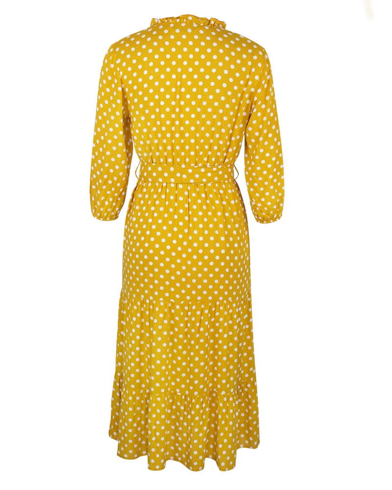 Autumn Winter Dot Bandage Dress Women Casual Ruffles V Neck High Waist Slim Print Long Dress Fashion