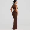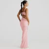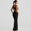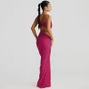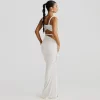 Design: Backless halter neck, high-waisted skirt