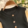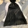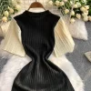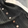 Black Knit Maxi Dress for Women A Line Single Breasted Flare Sleeve Ankle Length