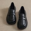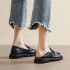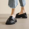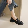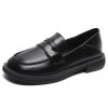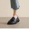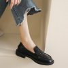 Women’s Round Toe Leather Loafers Low Heel Leather Shoes