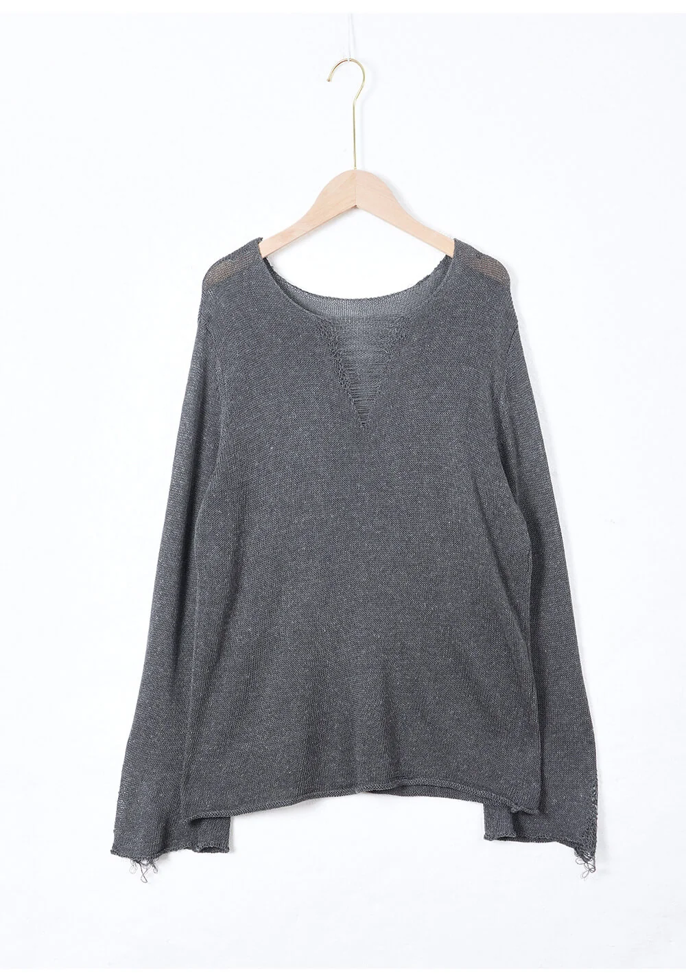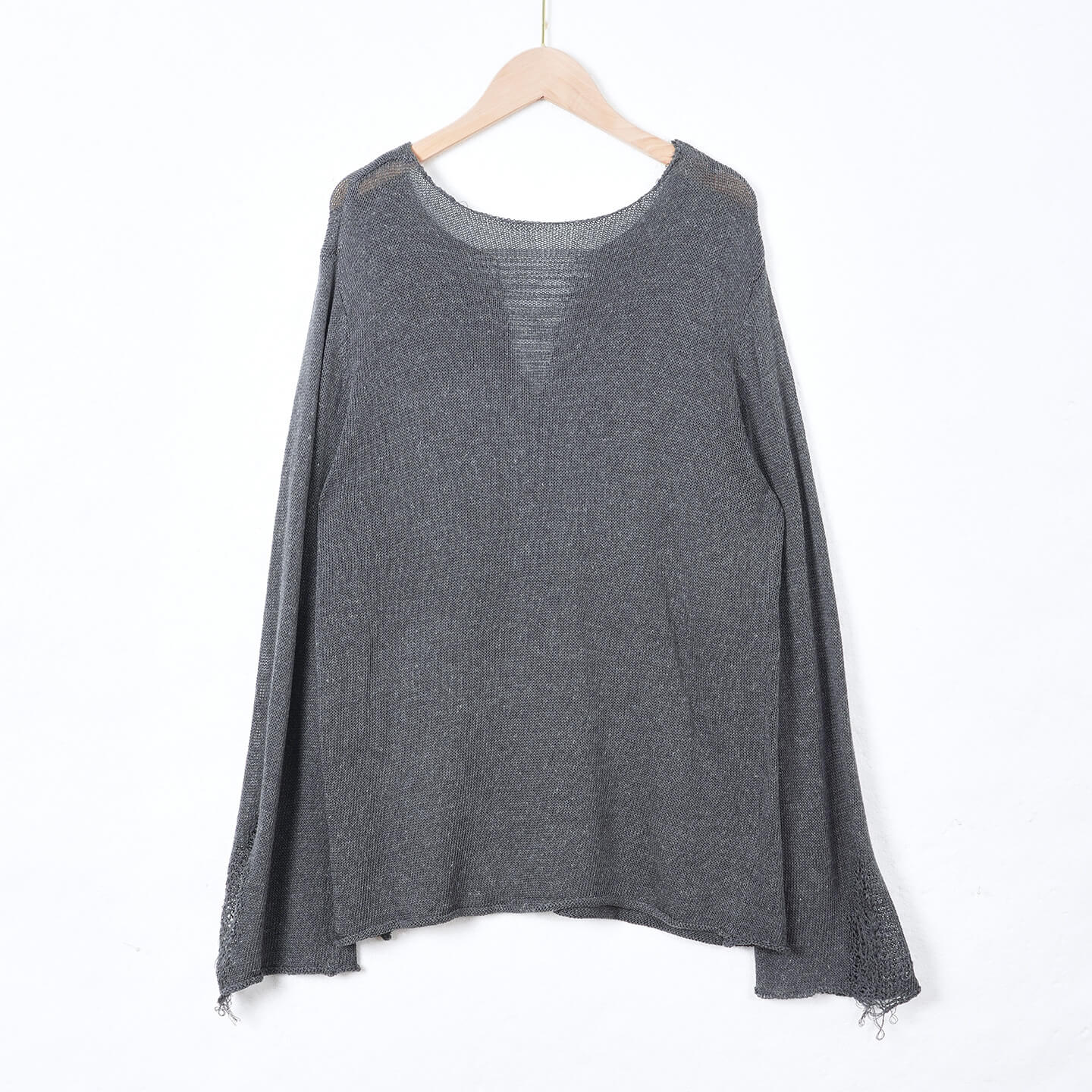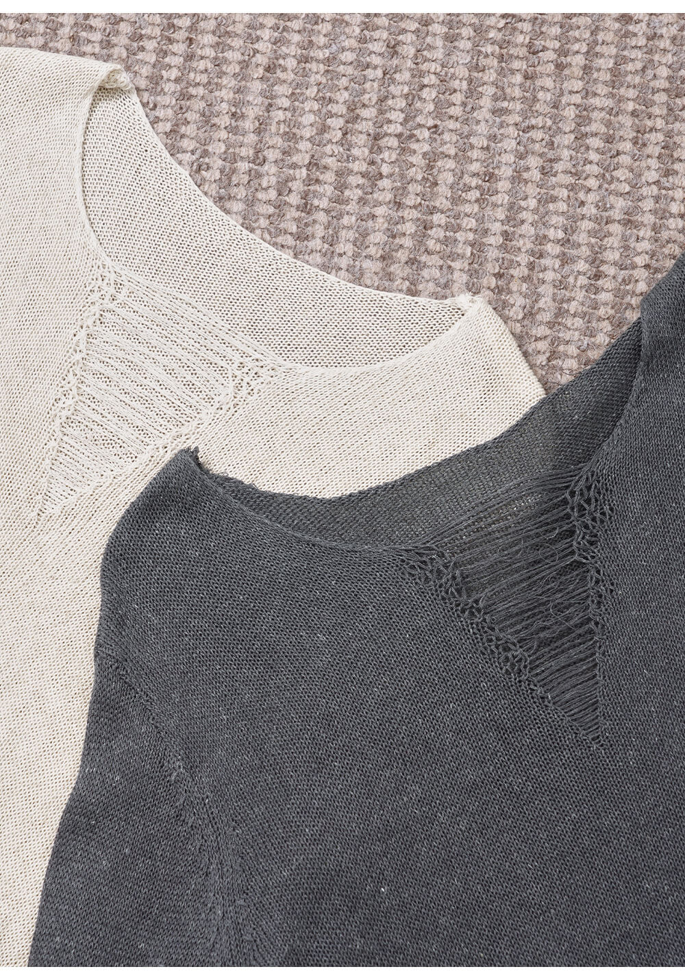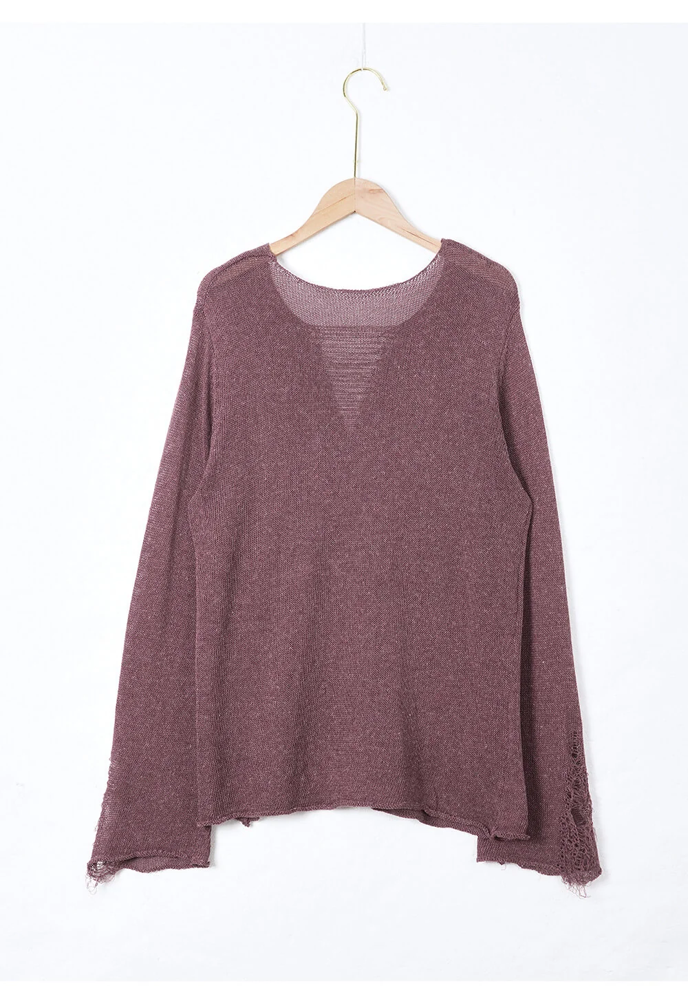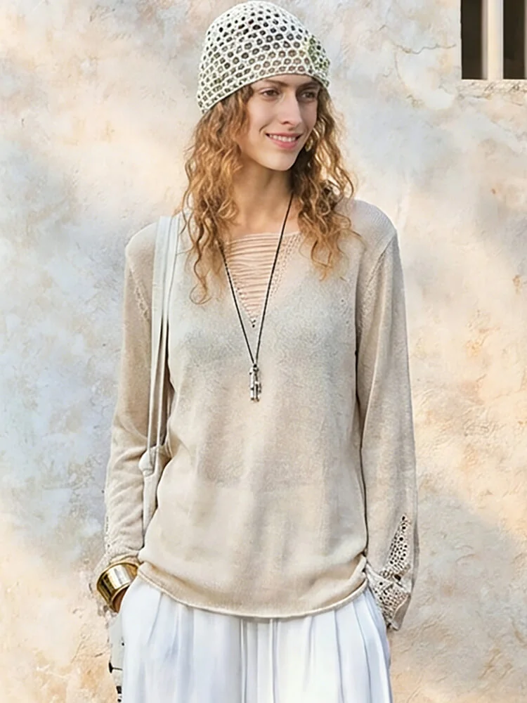 Boho Cutout Breathable Linen Lyocell Blend Womens Loose Knit Top