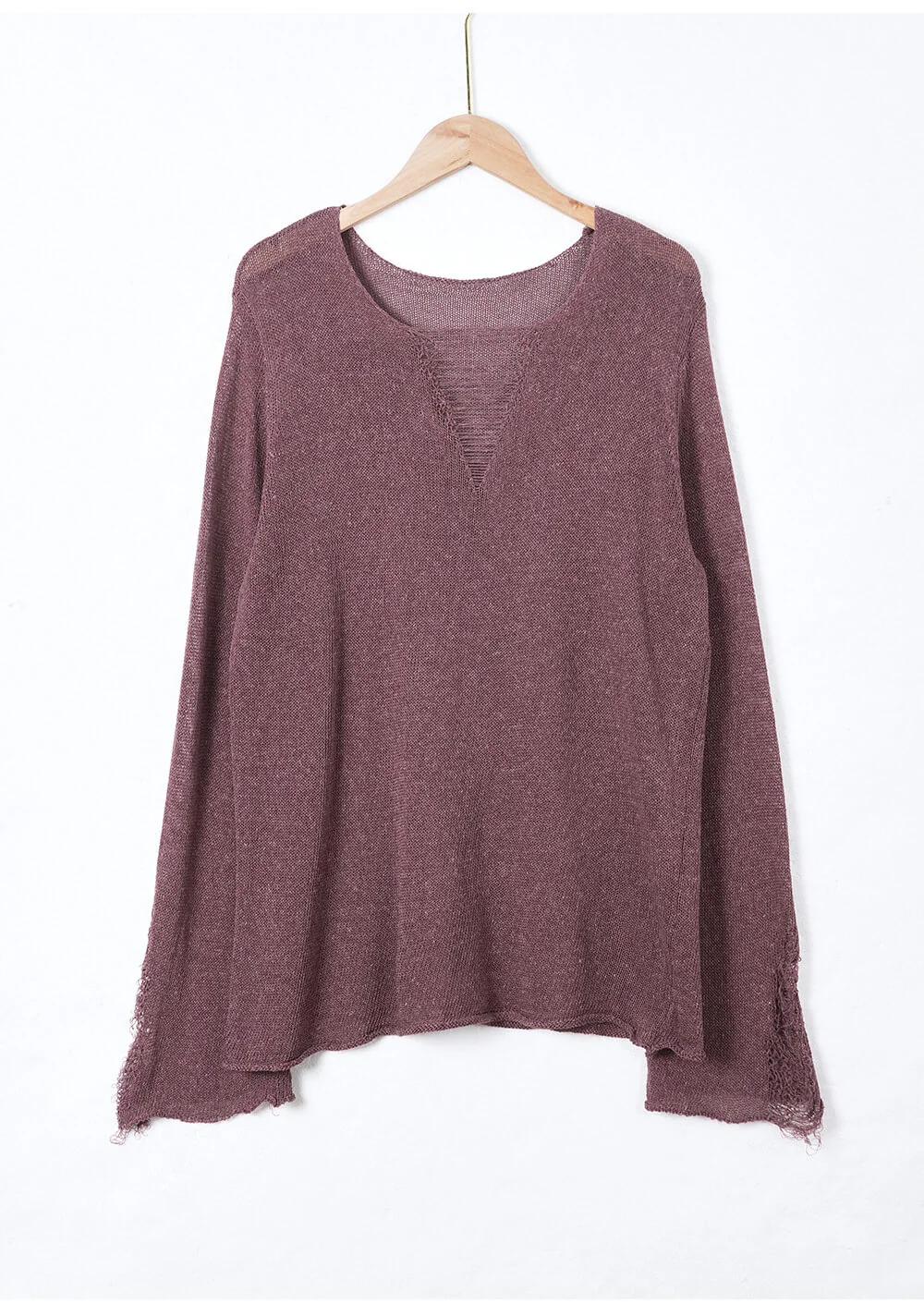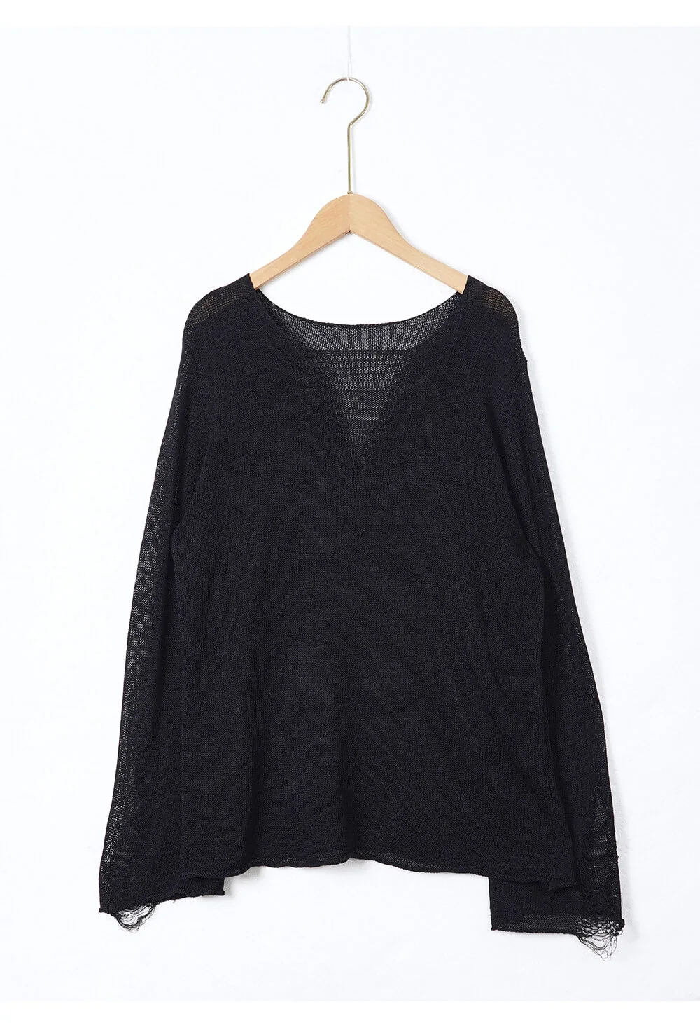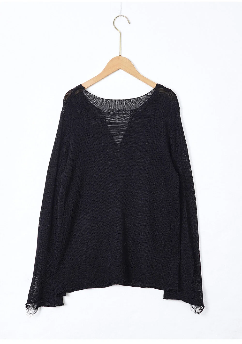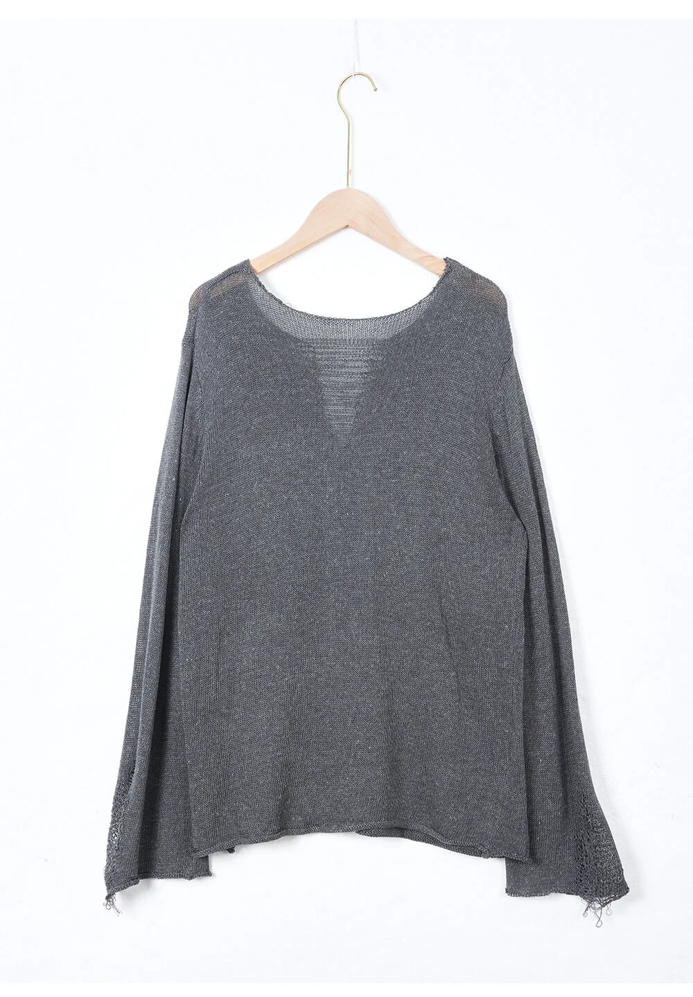 Boho Cutout Breathable Linen Lyocell Blend Womens Loose Knit Top