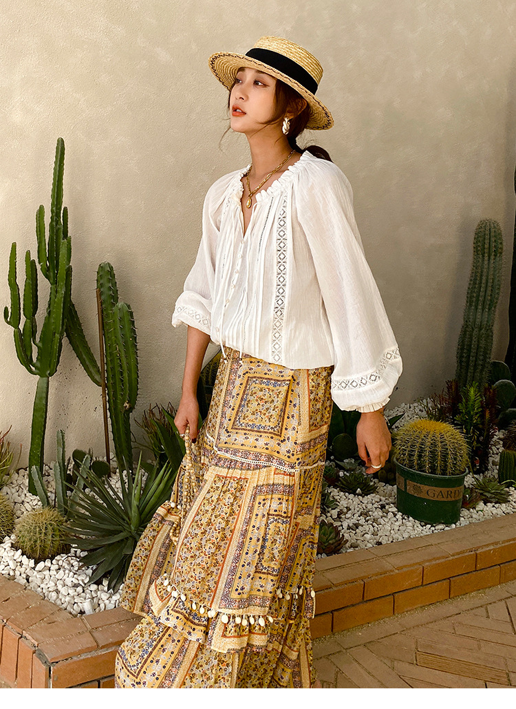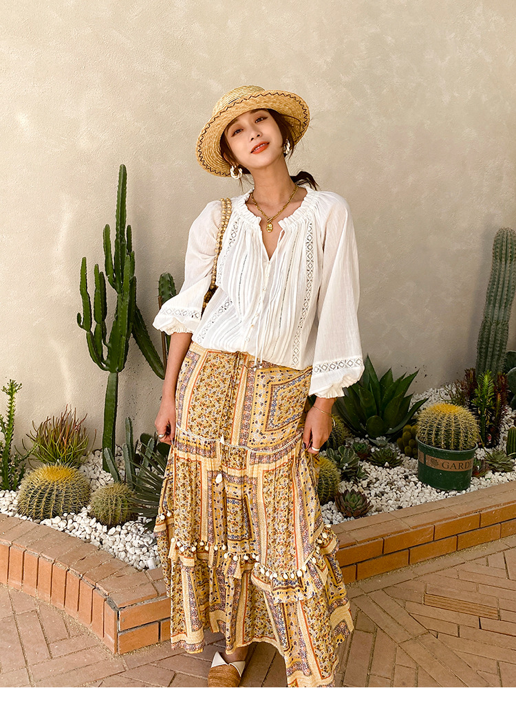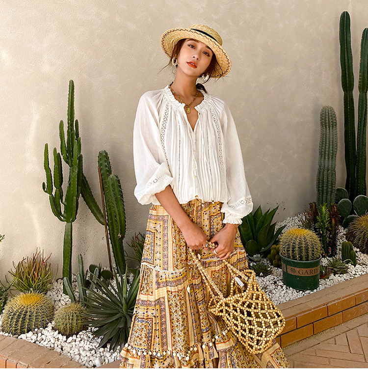 Boho White Breathable Cotton Broderie Anglaise Puff Sleeve Blouse