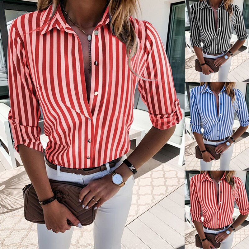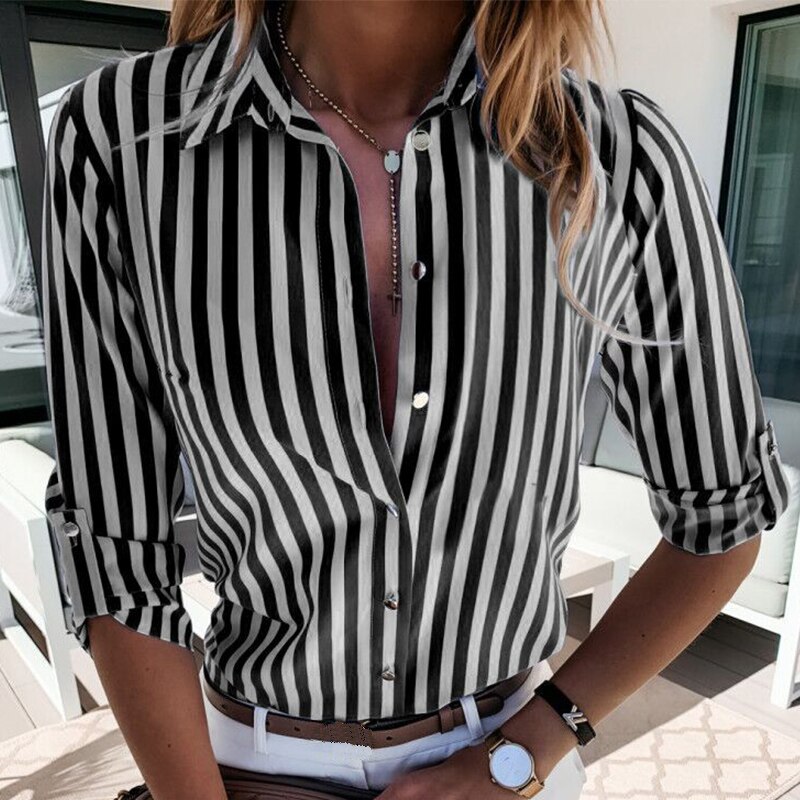 Casual Fashion Striped Long Sleeve Women Blouse Casual Women Officewear Long Sleeve Women Tops and Shirt Fall Clothing - Hplify