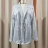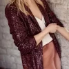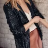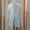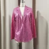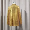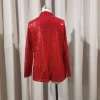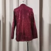 Elevate your wardrobe with this stylish sequin blazer jacket. Designed with a classic suit collar and long sleeves, this chic jacket offers a sleek and slim fit that flatters the figure. Featuring sparkling sequins that catch the light, this jacket is perfect for any casual or semi-formal event, offering the ideal balance of comfort and glamour. The open-front design and the absence of buttons create a laid-back yet sophisticated silhouette, making it an essential piece for a fashionable wardrobe. Available in a variety of stunning colors including black, silver, gold, red, burgundy, blue, hot pink, and rose gold, this jacket is perfect for day-to-night wear.