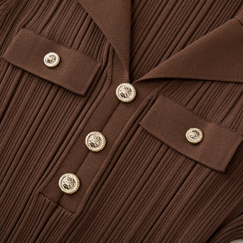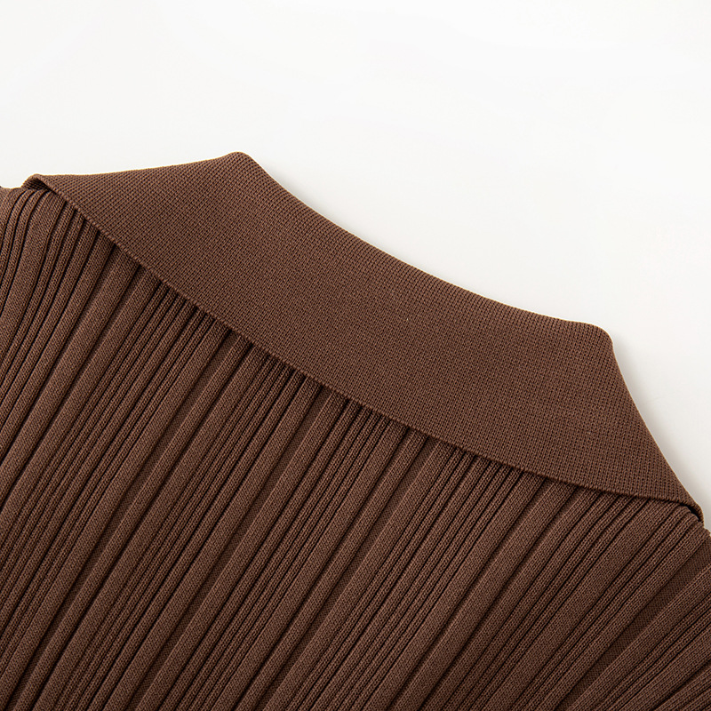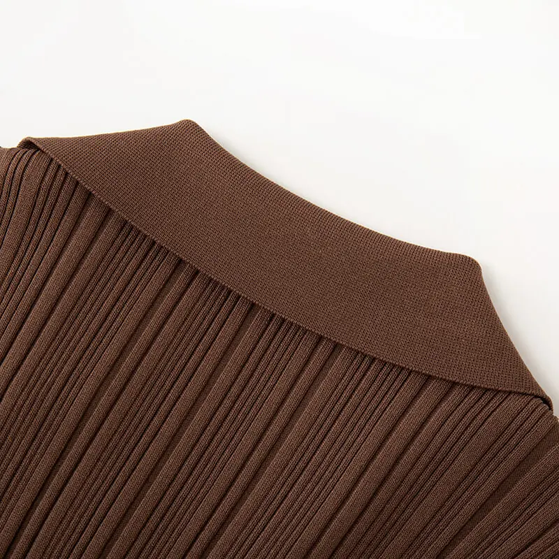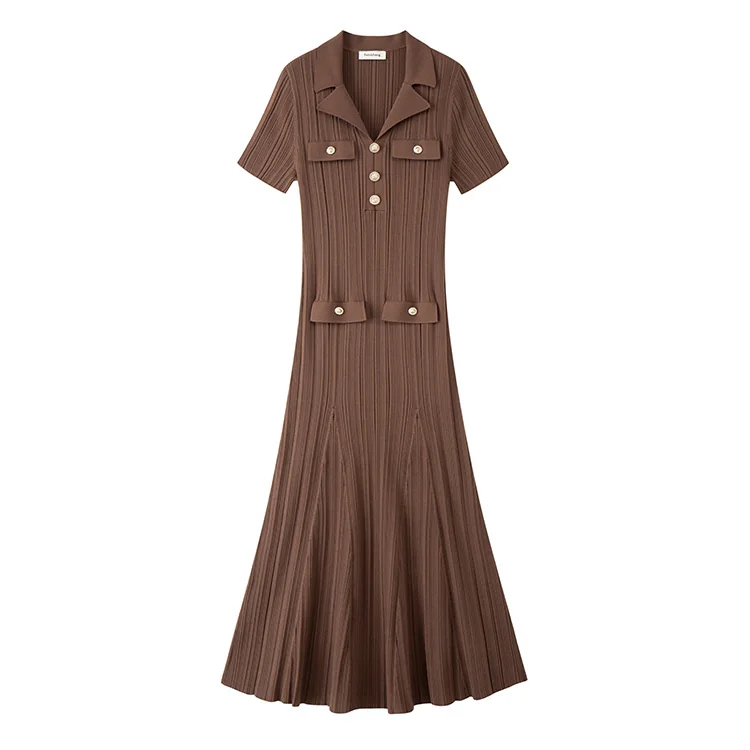 This dark brown collared knit midi dress fits all body types perfectly. It creates a polished elegant vibe for both work and daily casual occasions. The soft stretchy fabric keeps you comfortable for all-day wear. Button accents and a flattering A-line straight silhouette elevate your look easily. It matches well with ankle boots, heels or white sneakers to fit different styling needs.