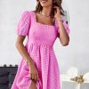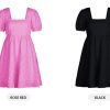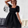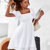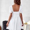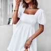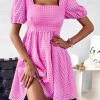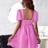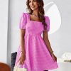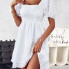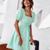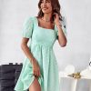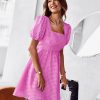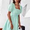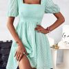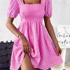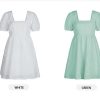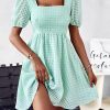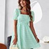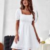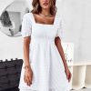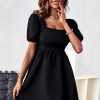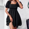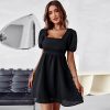 Elegant Dress Women Summer Solid Color Square Collar Short Sleeve High Waist A Line Causal Dresses