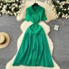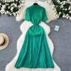 Elegant Knit Maxi Dress for Women Turn Down Collar Short Sleeve A Line