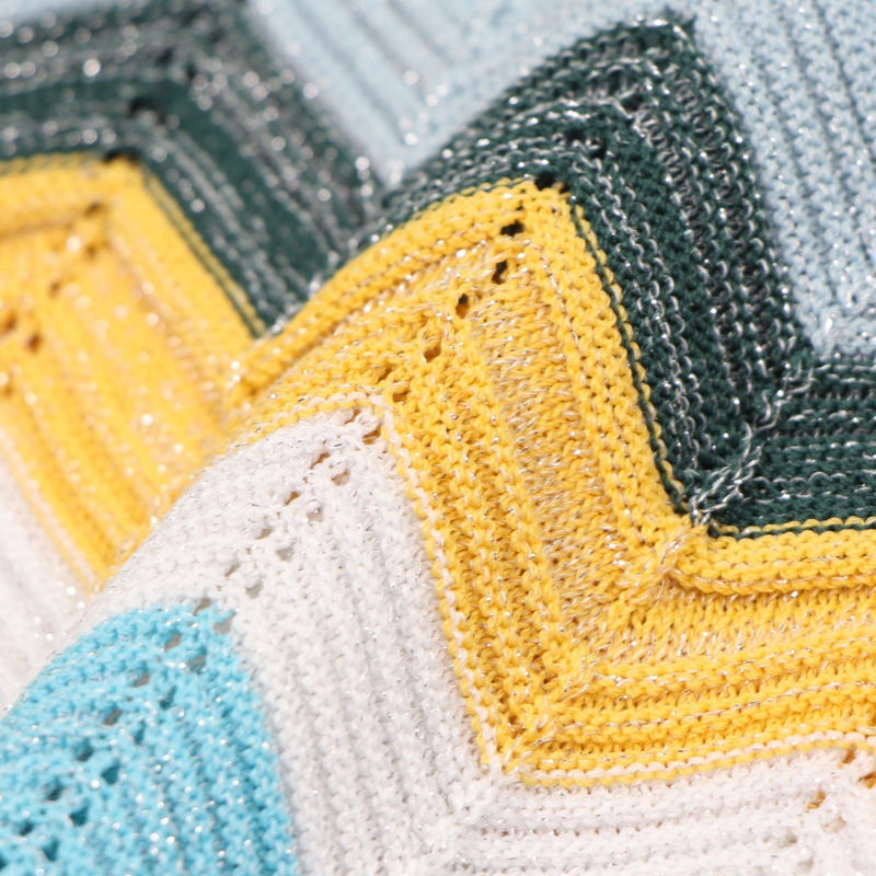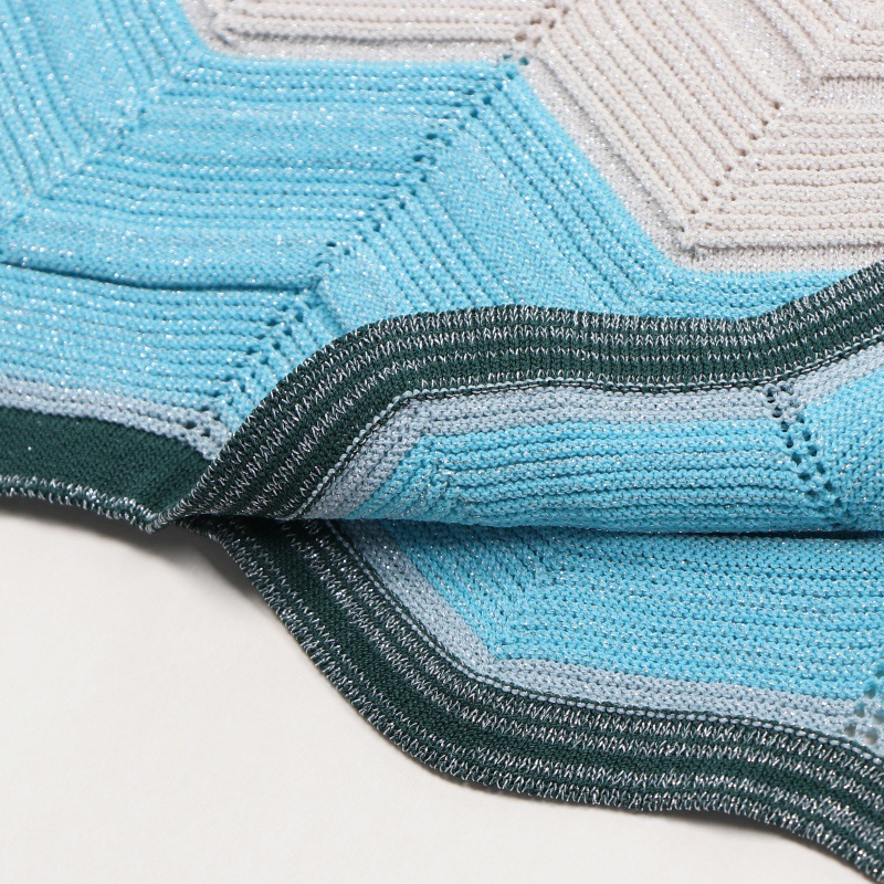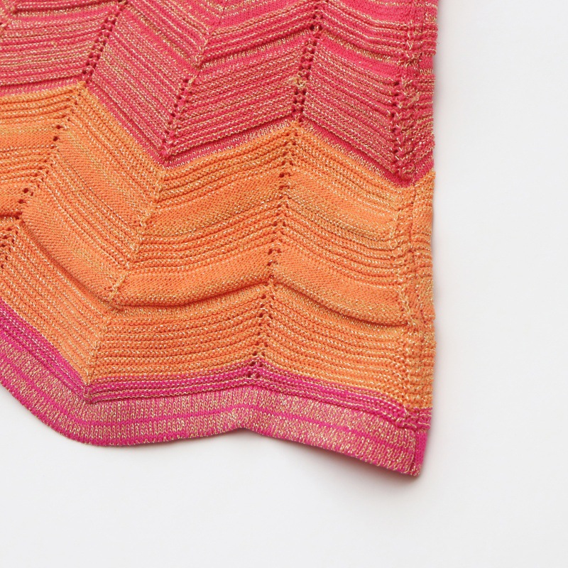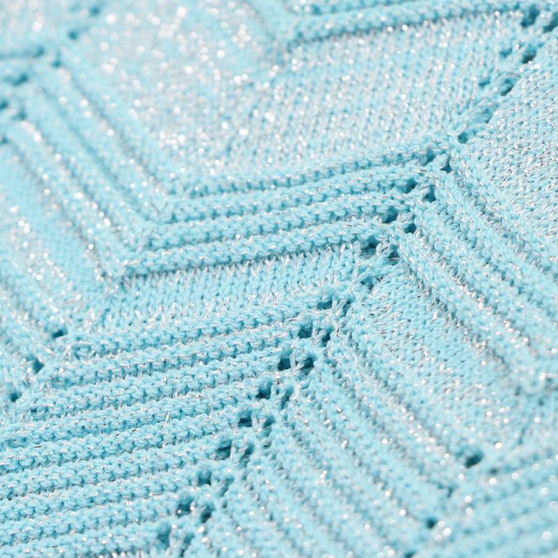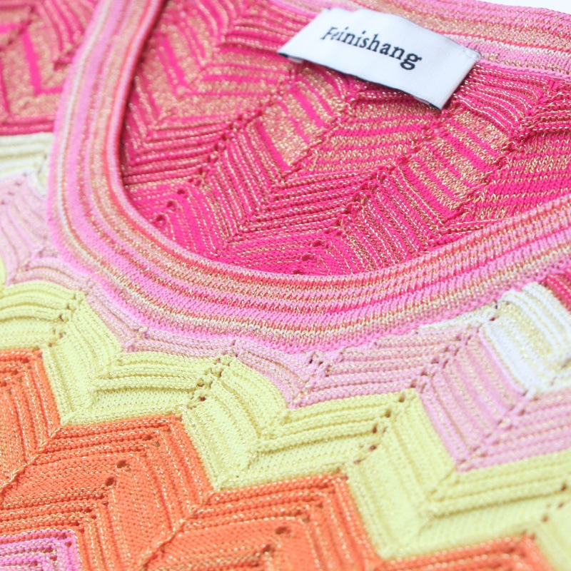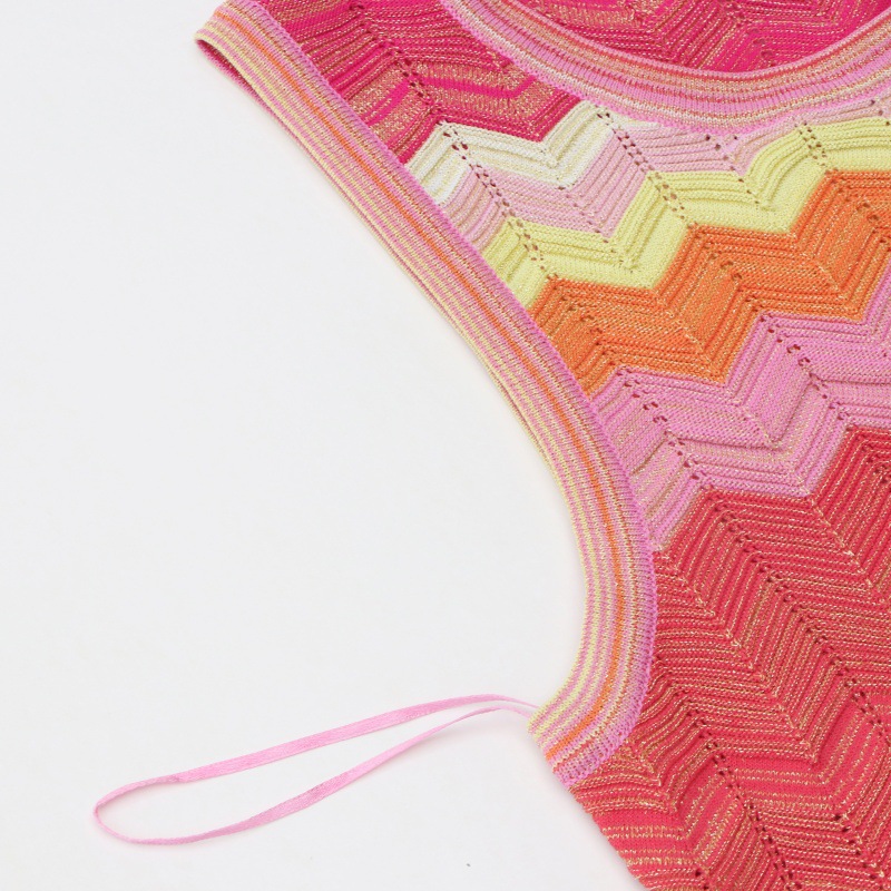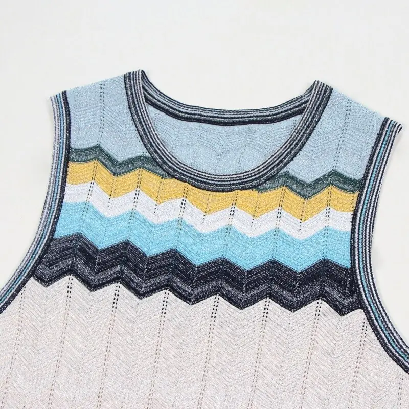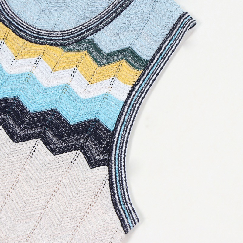 - Design: Round neck, sleeveless, medium waist, A – line fishtail skirt, wavy stripe pattern, hollow – out technique