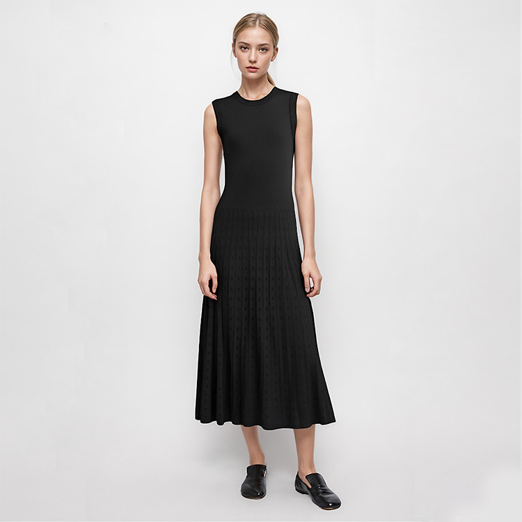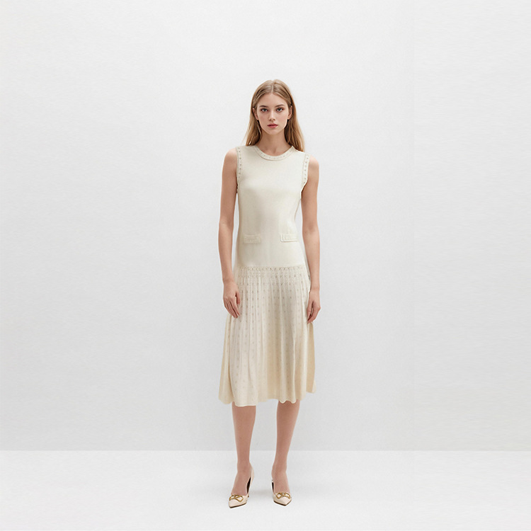 This elegant sleeveless midi knit dress fits most body types perfectly. It features subtle rhinestone embellishments along the neckline, armholes and pleated skirt for a gentle glamorous touch. The mid-rise waist and A-line silhouette flatter your figure naturally. Functional pockets hold your small essentials like lip balm, keys or cards easily. The soft stretchy knit fabric keeps you cool and comfortable in warm summer days. It works for daily commute, casual outings, coffee dates, casual office settings and weekend brunches. You can pair it with mules, sneakers or heeled sandals to match different occasion needs.
