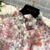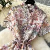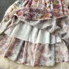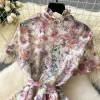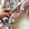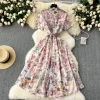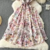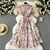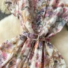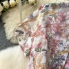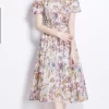Elegant Vintage Print O-Neck Mid Calf Polyester Cotton Dress for Women