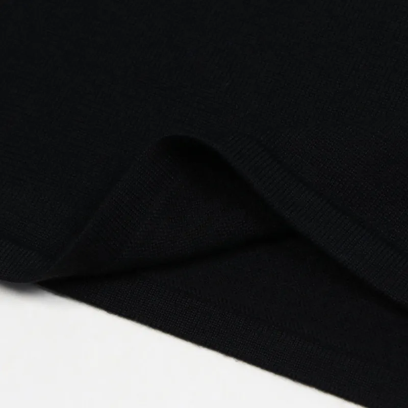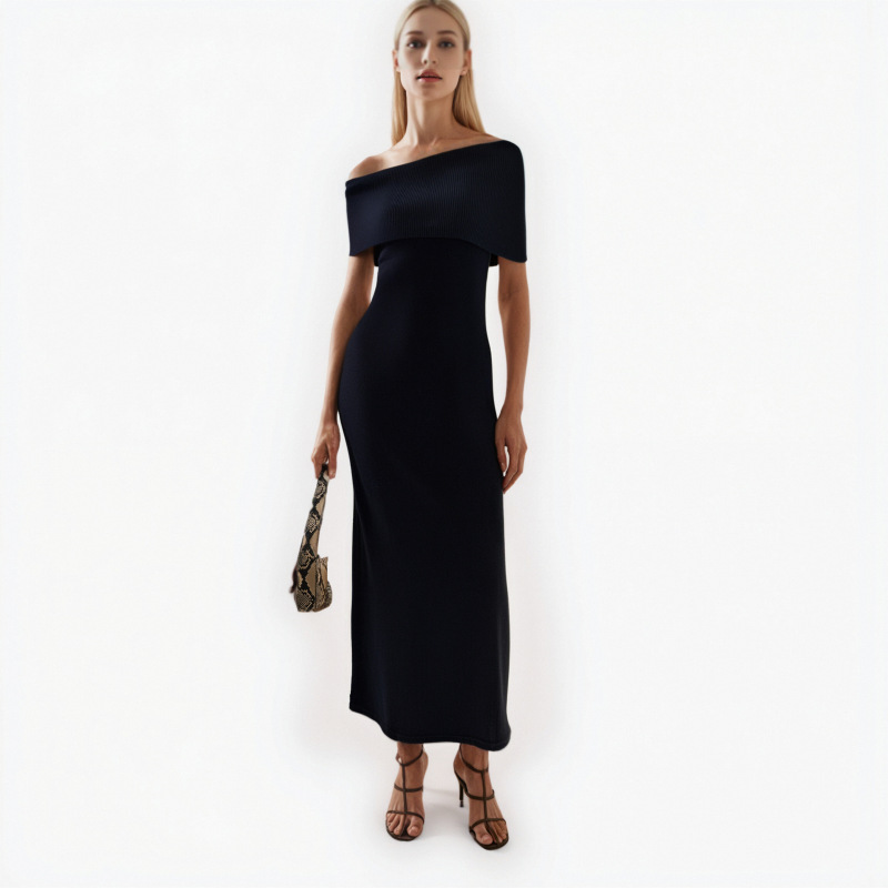 This elegant black knit midi dress fits your body perfectly to show a flattering silhouette. It uses soft wool fabric with non-iron treatment, so it stays crisp all day long. The irregular neck adds a subtle stylish touch, and the high waist design lifts your body proportion. The short sleeves and A-line cut bring comfort and chic at the same time. You wear it to office, weekend brunch, dinner dates or casual cocktail events for a polished look.