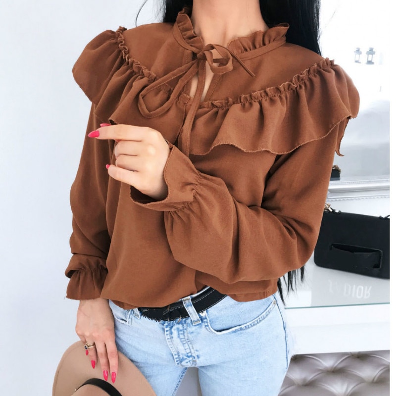 Fall Clothing Casual Tops Causal Long Sleeve Shirt Casual Round Neck Ruffled Long Sleeve Women Blouse Casual Tops - Hplify