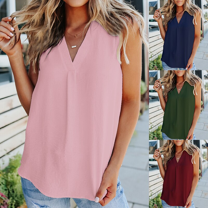 Fashion Casual Low Cut Solid Color Sleeveless Women Summer Tshirt Sexy Women Tank Tops Women Casual Women Office Wear Plus Size - Hplify