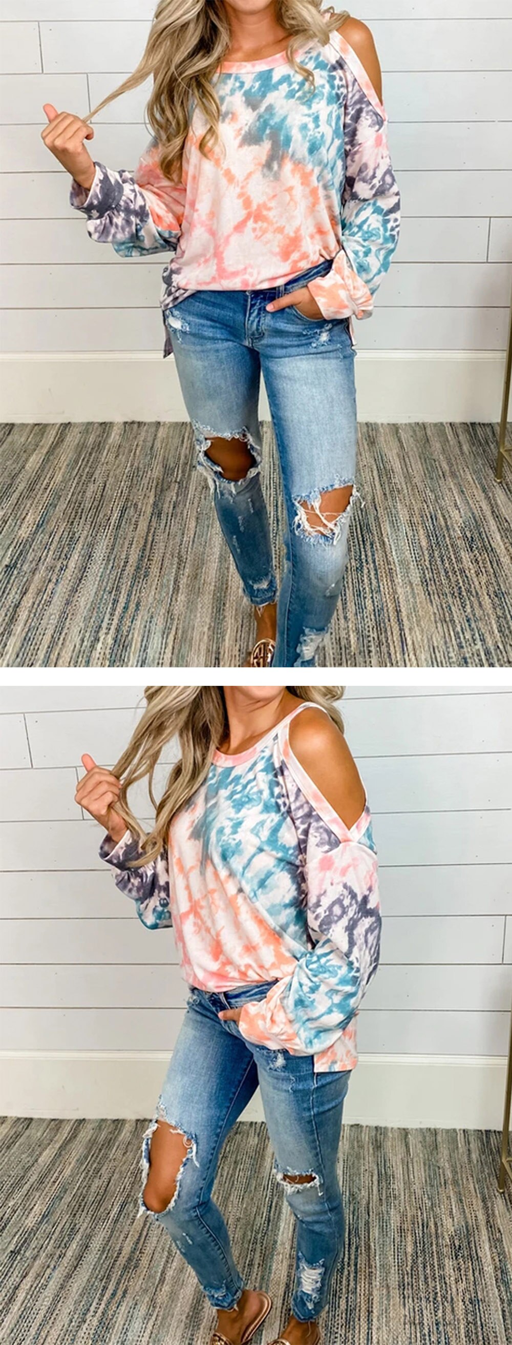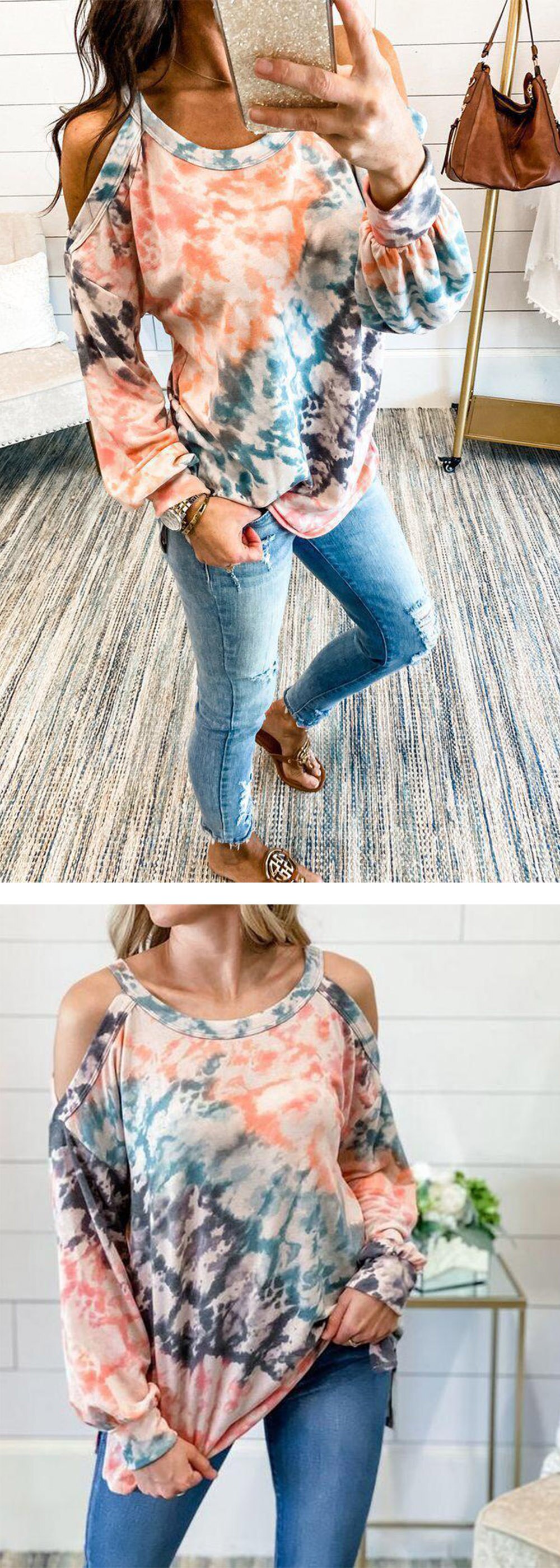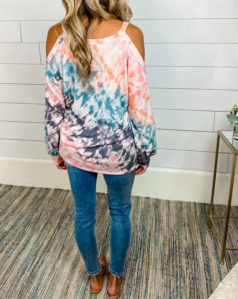 Fashion Casual Off Shoulder Halter Tie Dye Long Sleeve Women Blouse Sexy Off Shoulder Lantern Sleeve Women Tops - Hplify