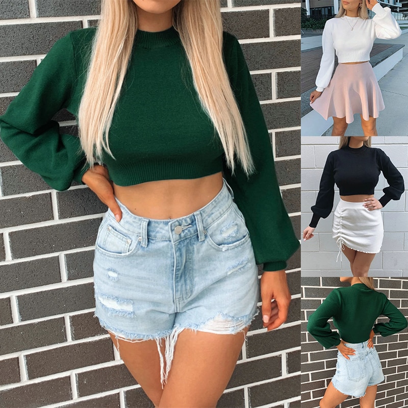 Looking for the perfect top to take your fall wardrobe to the next level? Look no further than this fashion-forward crop top! Made from a comfortable and stretchy fabric, this top is perfect for layering or wearing on its own. The round neck and long sleeves make it ideal for cooler days, while the solid color design means it will go with everything in your closet. Dress it up with a skirt and heels for a night out, or keep it casual with jeans and sneakers. However you style it, this top is sure to turn heads!