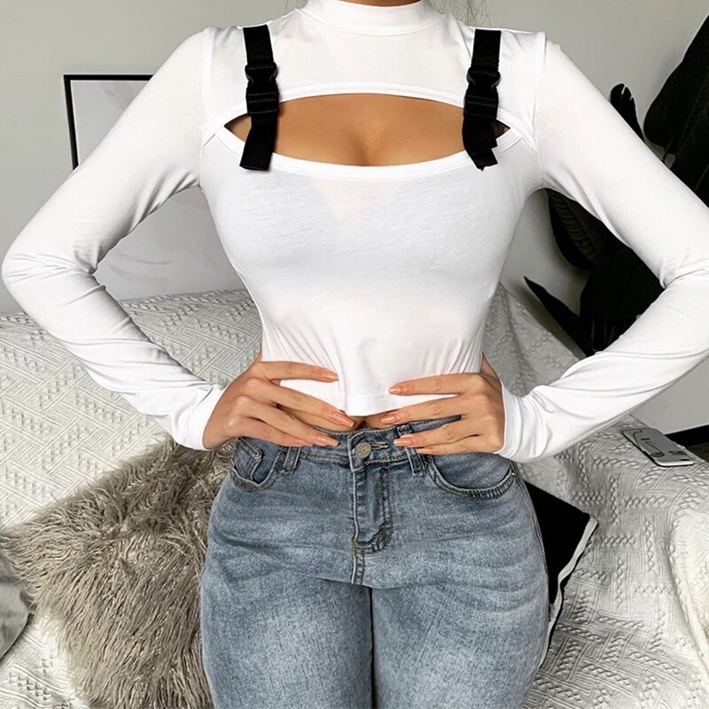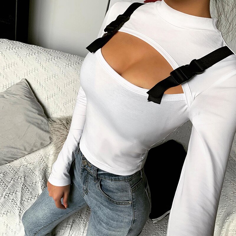Fashion Fall Clothing Sexy Solid Color Hollow Out Long Sleeve Women Blouse Sexy Women Long Sleeve Tops and Shirt - Hplify