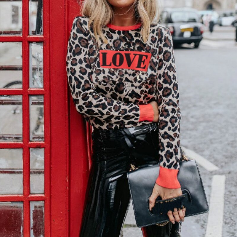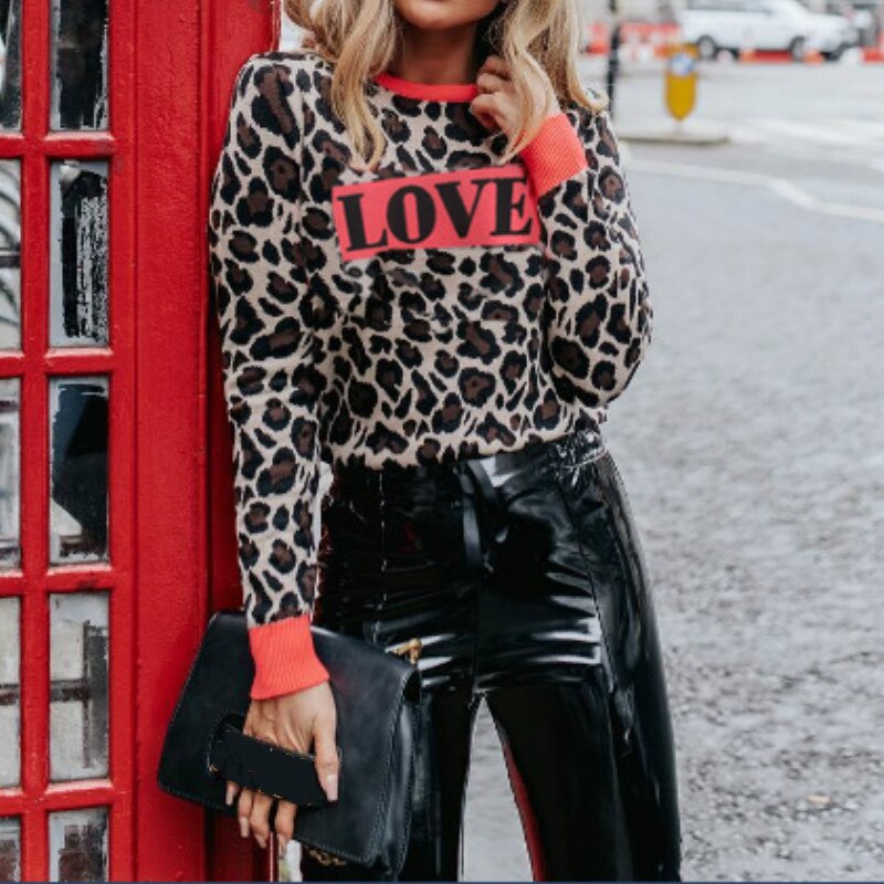 Fashion Long Sleeve Women Sweatshirt Fall Clothing  Casual Leopard Letter Printed Long Sleeve Women Pullovers Women Clothing - Hplify