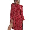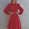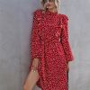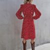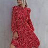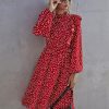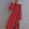 Fashion Ruffles Heart Dot Print Dress Women Elegant Full Sleeve High Waist Ladies Spring Autumn Long Dress Red