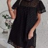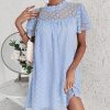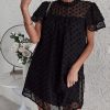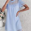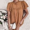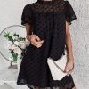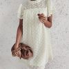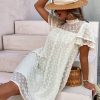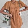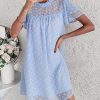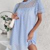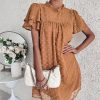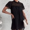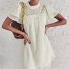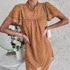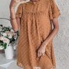 Fashion Spring Summer Sweet Solid Dress Women Ruffles Short Sleeve Stand Collar Jacquard Sexy Short Dresses Ladies Holiday Style