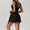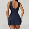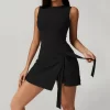 This innovative activewear jumpsuit combines fashion-forward design with functional performance. The 45% spandex/55% nylon blend offers medium compression that sculpts while allowing full mobility:
