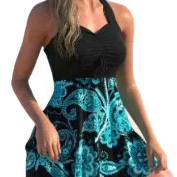 This floral print halter two – piece swimsuit blends style and comfort for your water – related activities! The halter neck and charming floral pattern make it a remarkable choice. It has a chest pad (without underwire) that offers gentle support without causing discomfort. Made of 82% polyester and 18% spandex, it provides a stretchy and figure – flattering fit. The two – piece design gives you more flexibility. Available in plus sizes from S to 5XL, it suits all body types, whether you’re swimming, doing water sports, or relaxing at the beach. It’s perfect for summer days by the pool or the ocean!