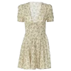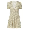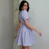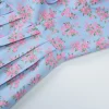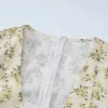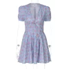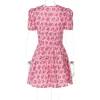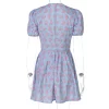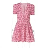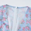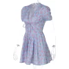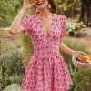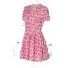 Floral Print V-Neck Short Sleeve Lace Up Zip Up Sexy Slim Pleated Mini Dress