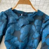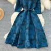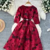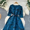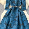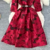 French Fashion Print ONeck ALine Ball Gown Dress Women Vintage Elegant Party