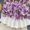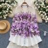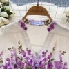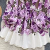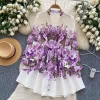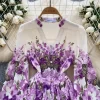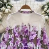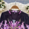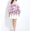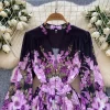 French Print V-Neck Long Sleeve A Line Casual Dress Mid Calf Autumn