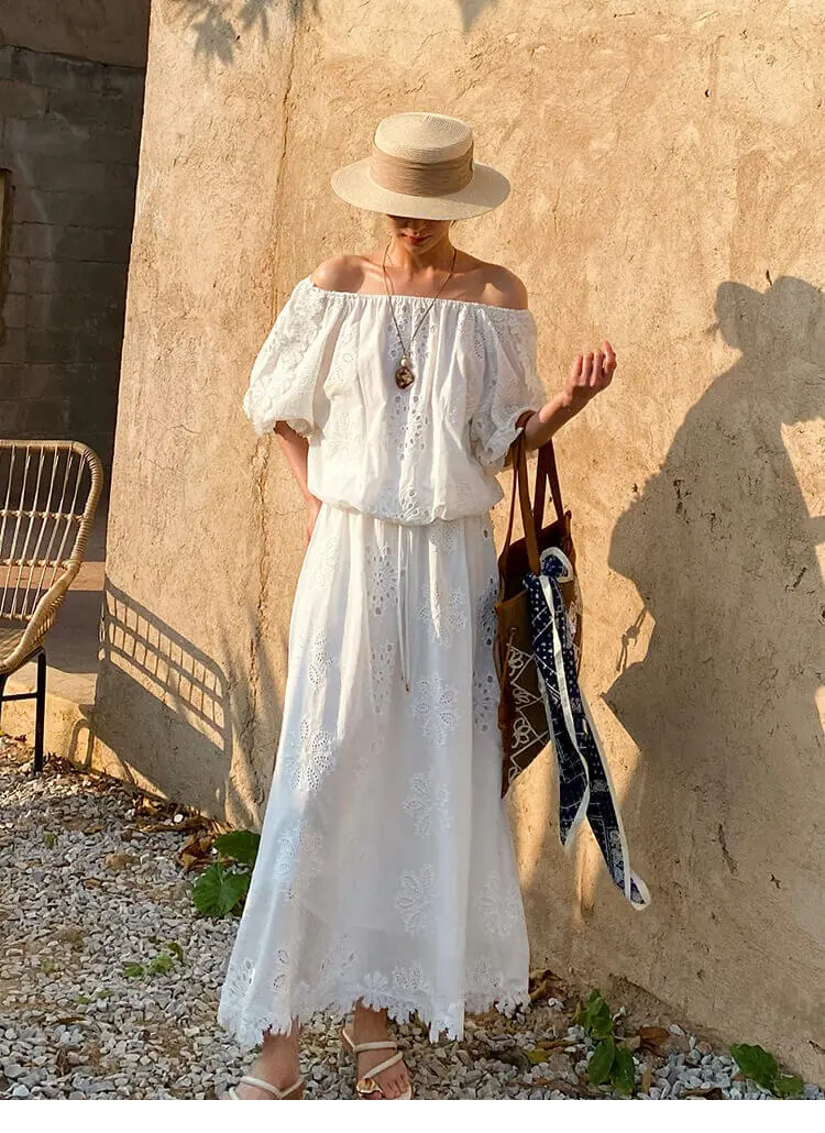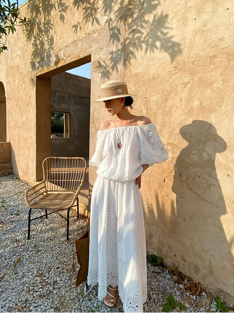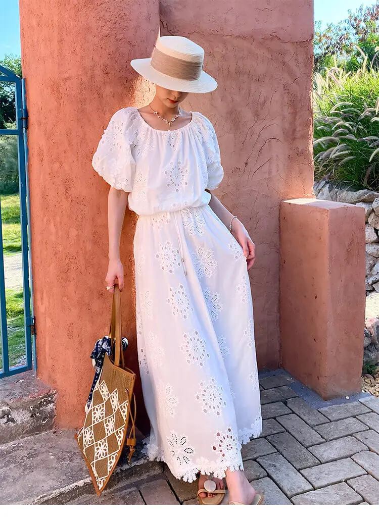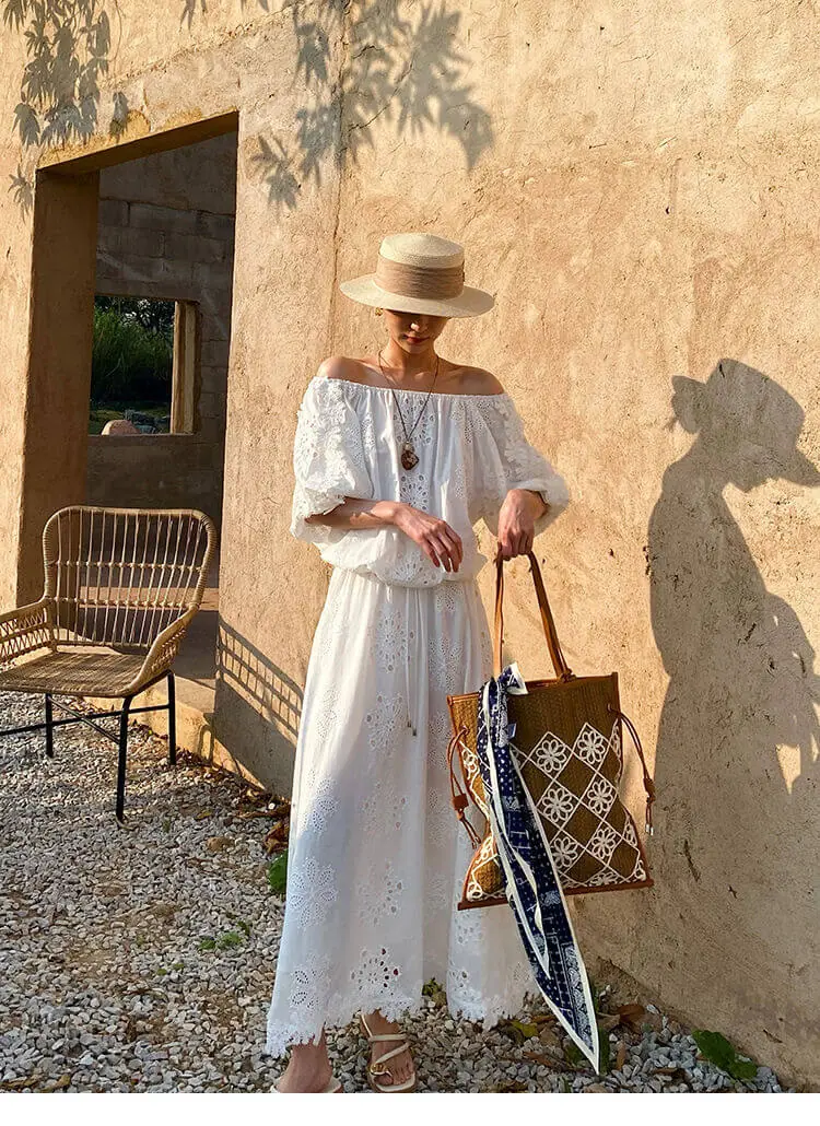 Light, breathable pure cotton rests gently against your skin as you move. Delicate floral embroidery catches the warm sun, wrapping you in effortless French Riviera romance for every sunny summer outing.