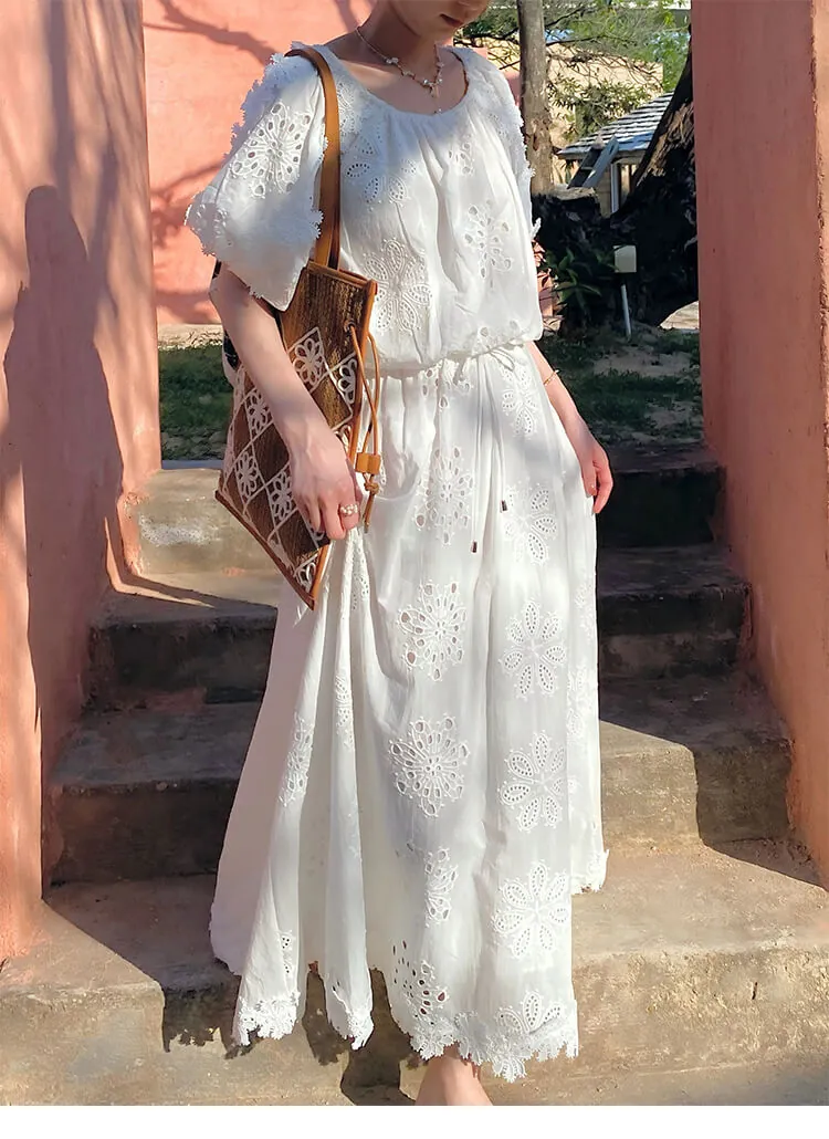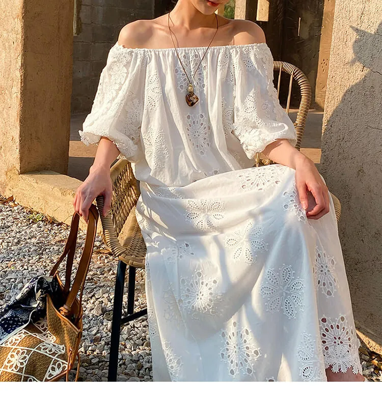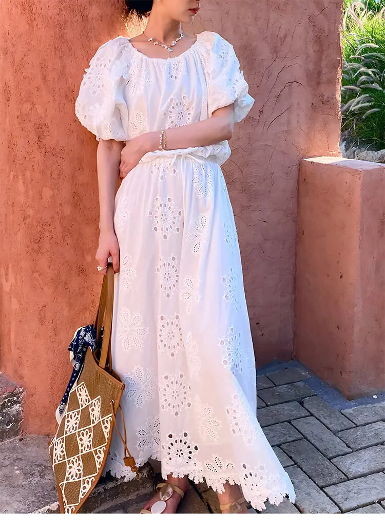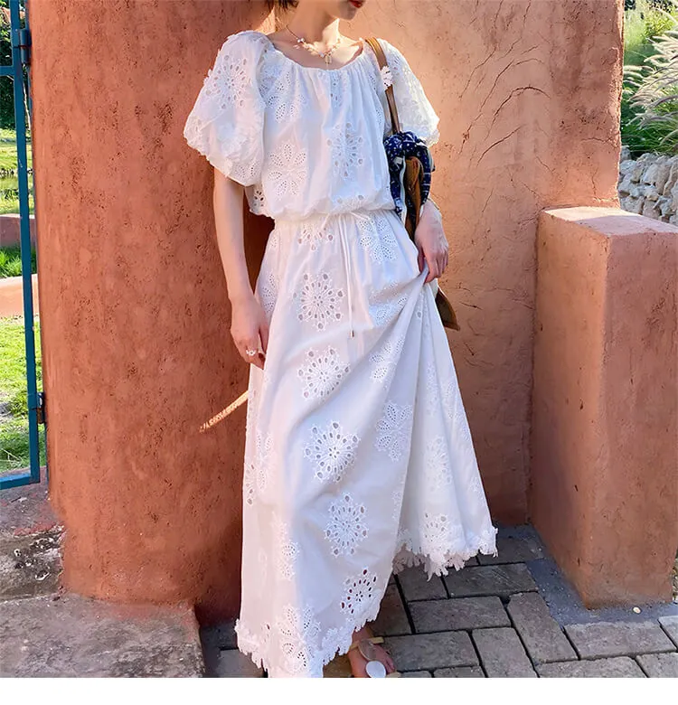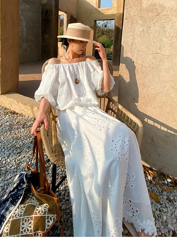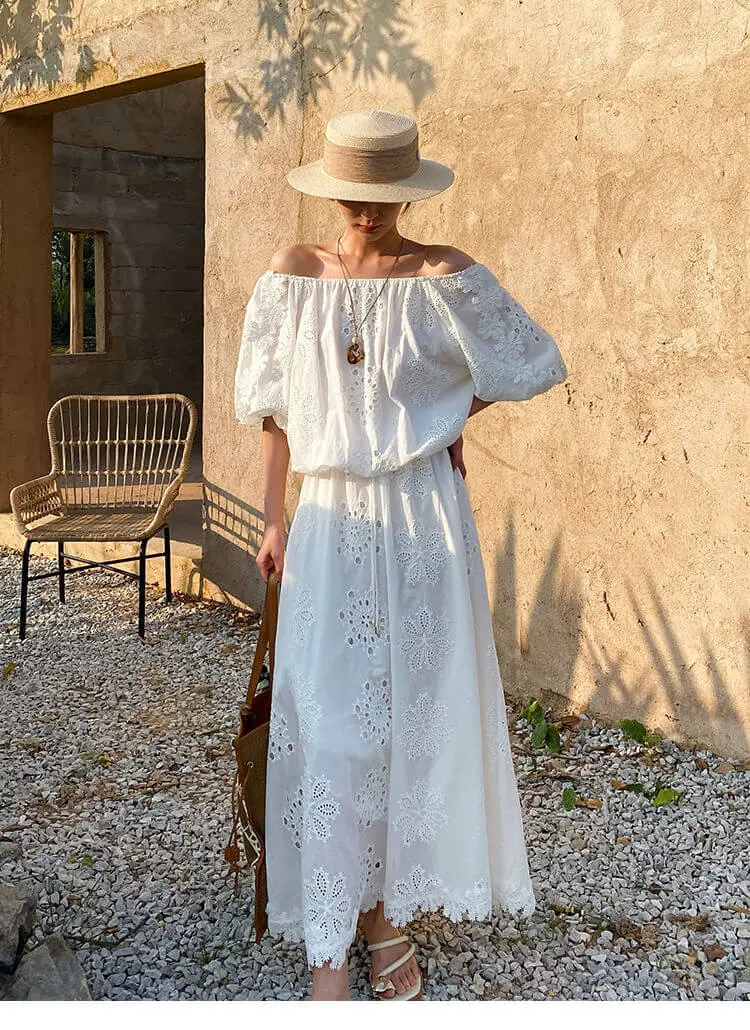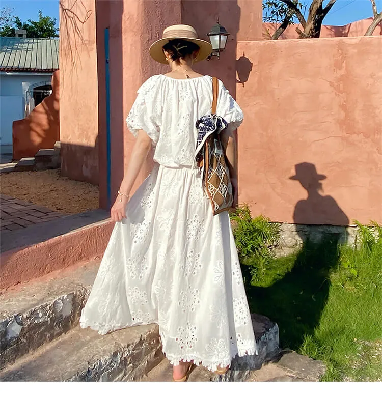 French Riviera Breathable Cotton Broderie Anglaise Maxi Skirt