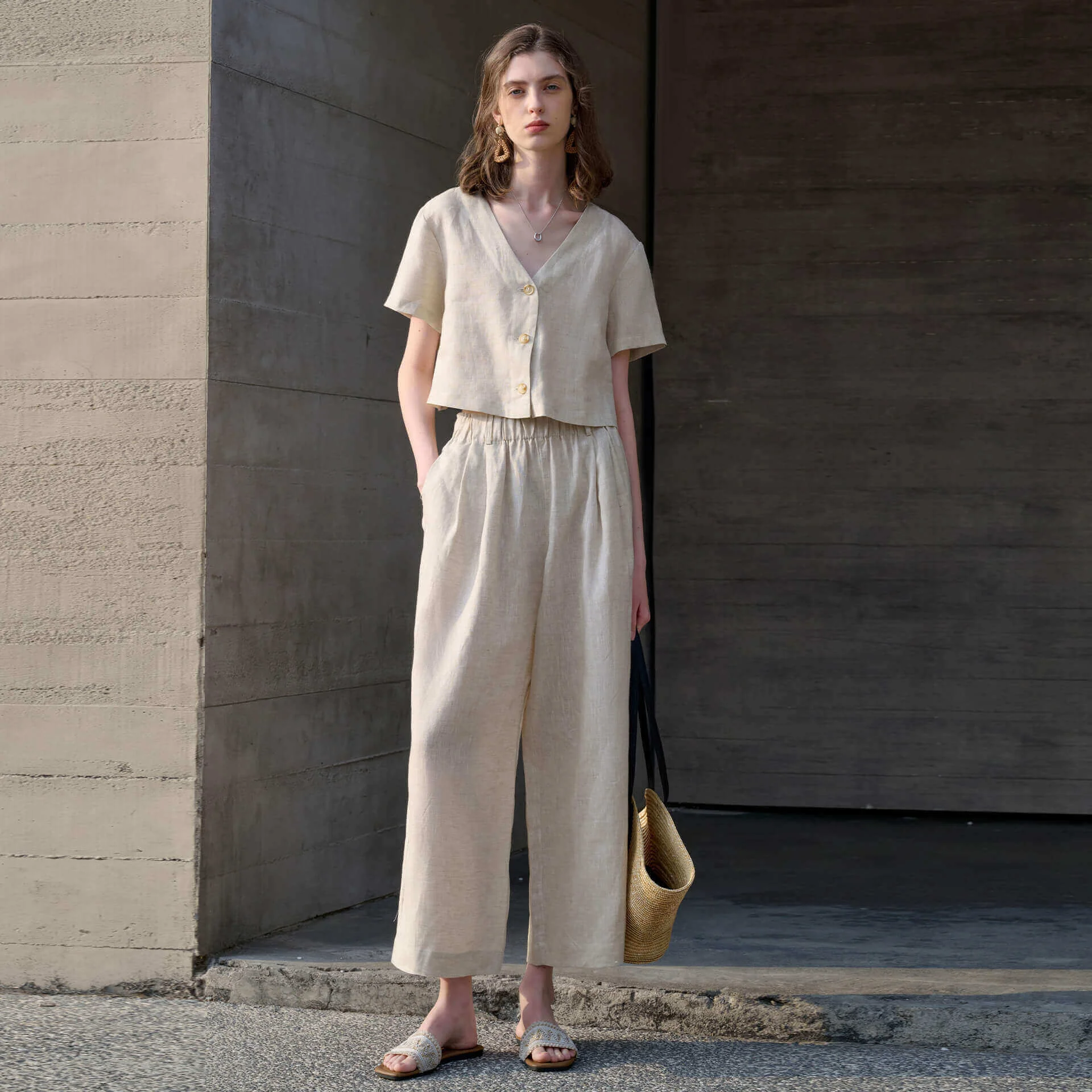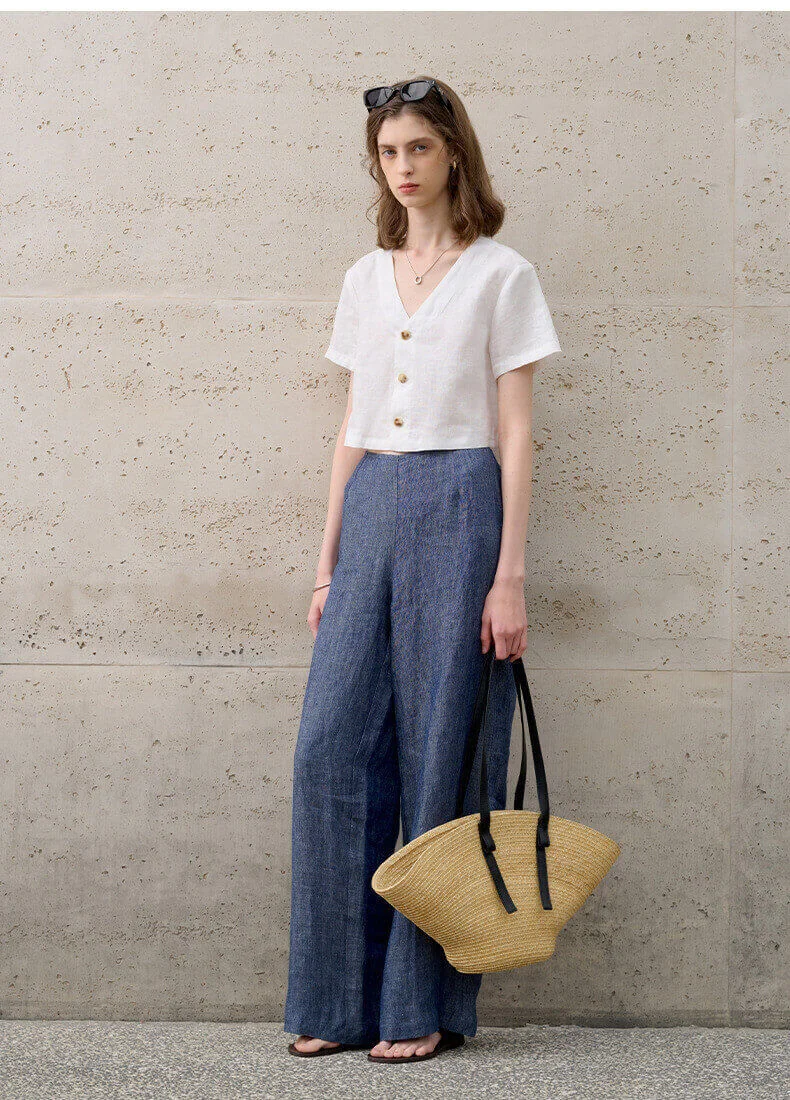 Light, airy pure linen sits comfortably against your skin, wicks moisture instantly to keep you cool and fresh all day. It delivers a sleek, understated modern minimalist vibe ideal for polished everyday wear.