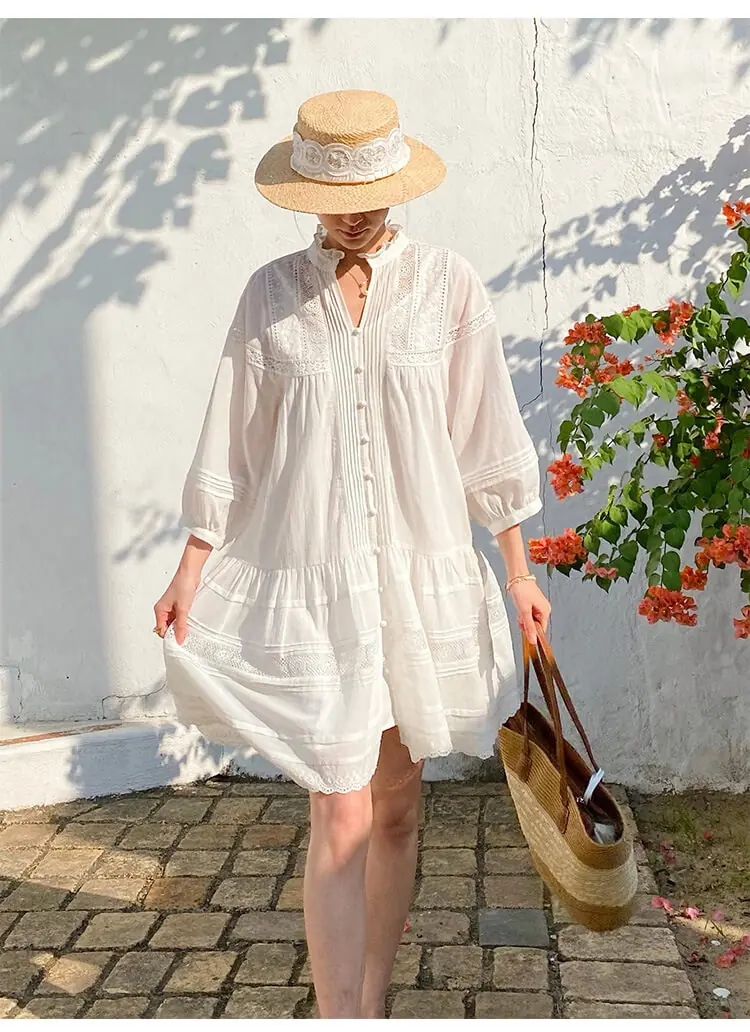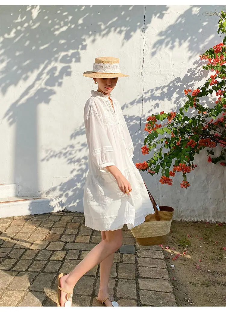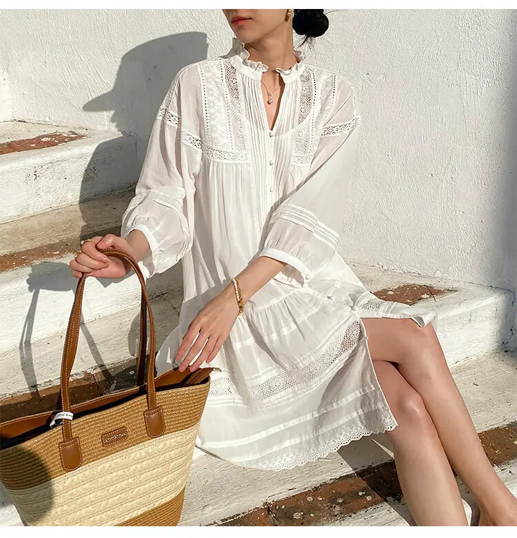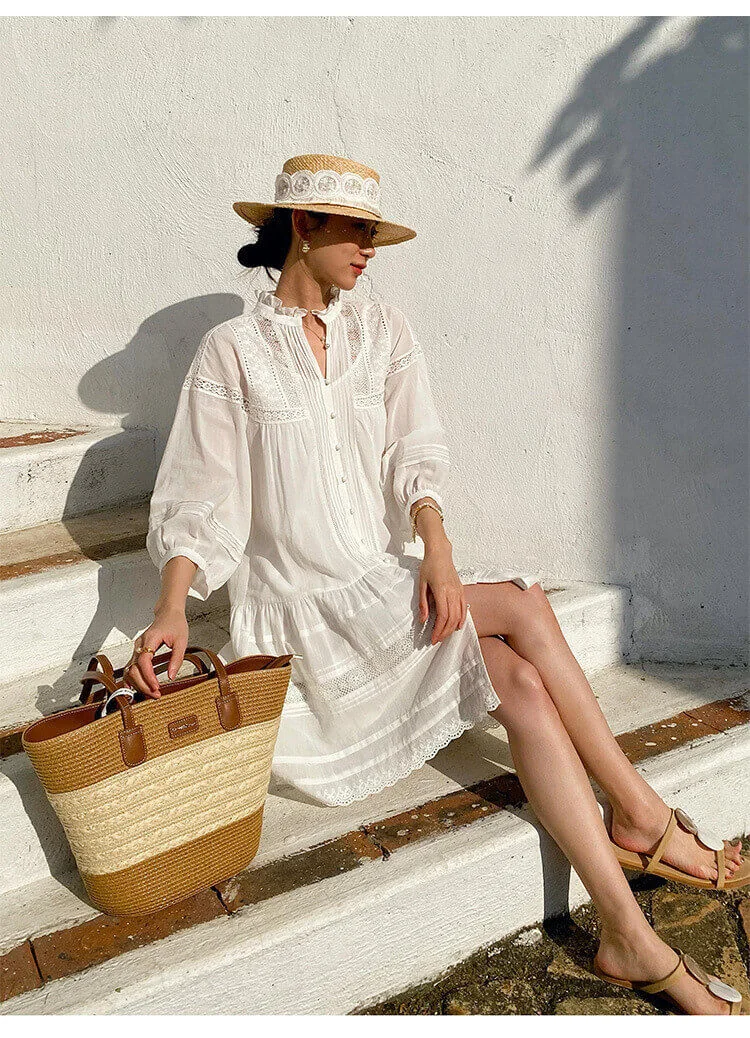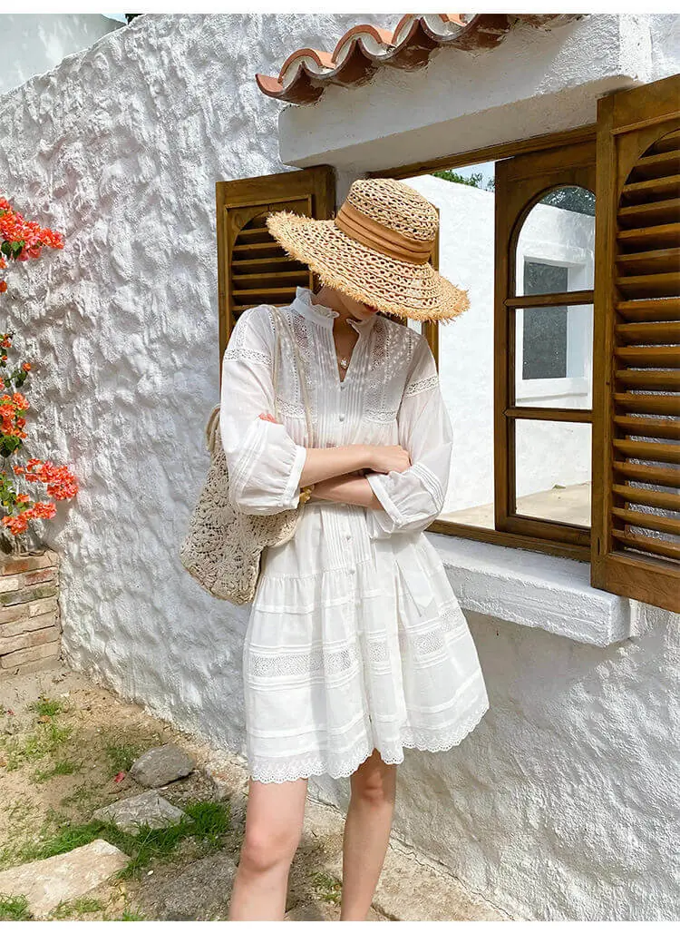 Soft breathable pure cotton sits light against your skin as delicate lace and embroidery details catch the warm coastal breeze, turning every casual outing into a sun-kissed French Riviera escape.