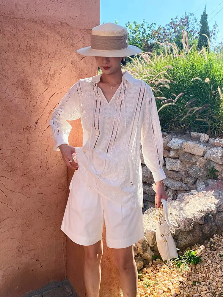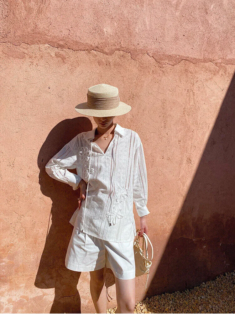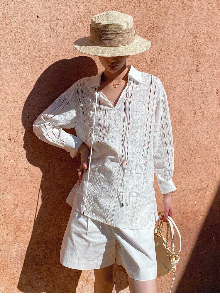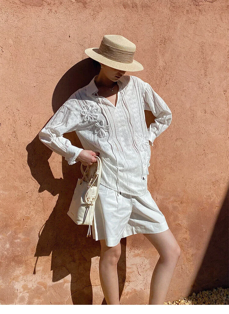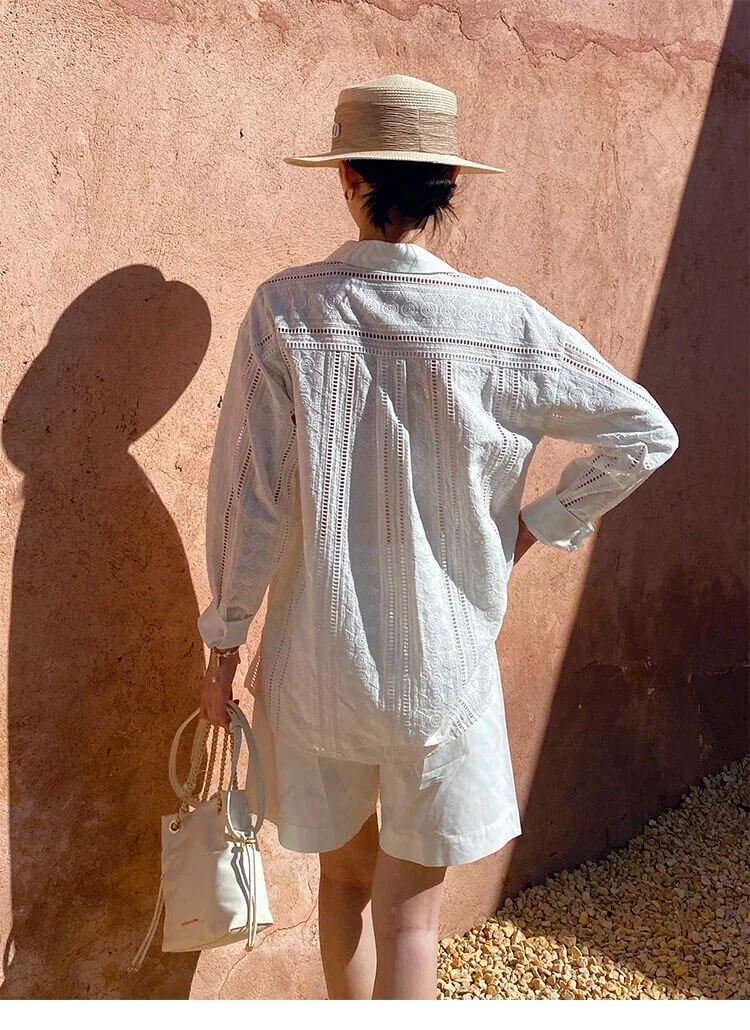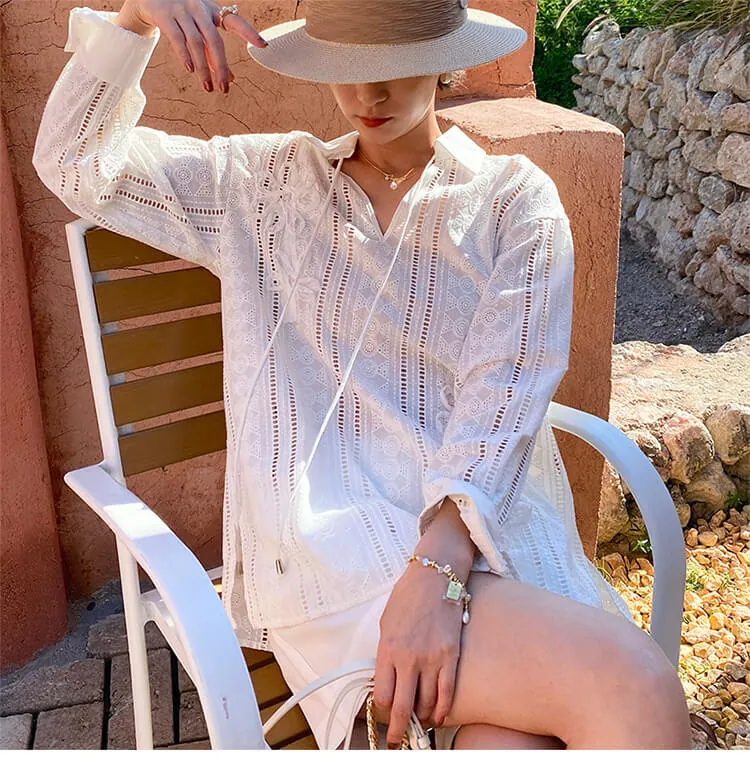 French Riviera Cotton Broderie Anglaise Long Sleeve Shirt