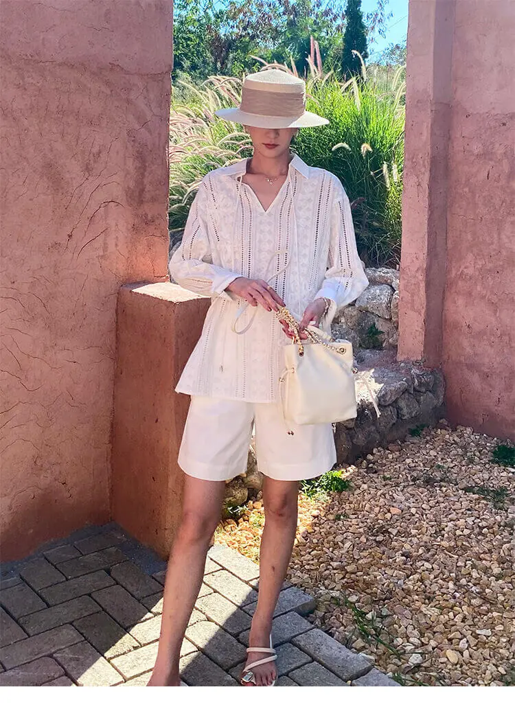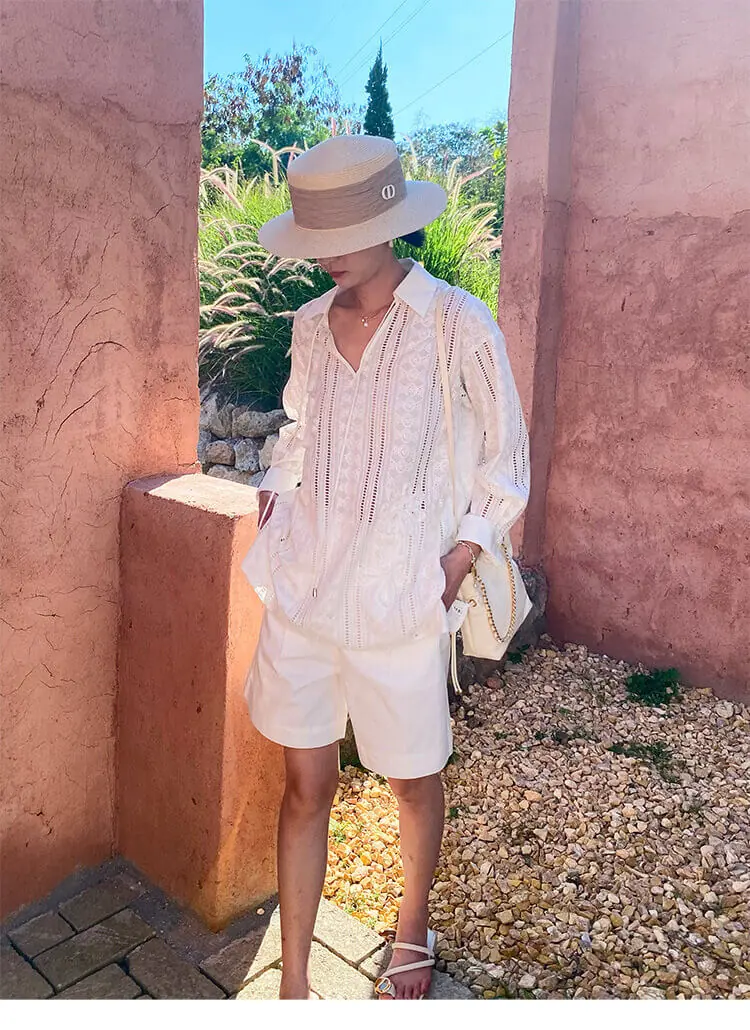 Pair with linen shorts and espadrilles for a coastal getaway, or tuck into tailored wide-leg trousers for a soft, polished office look.