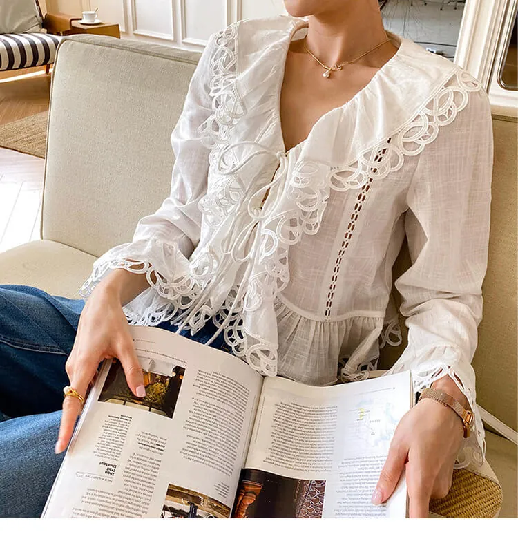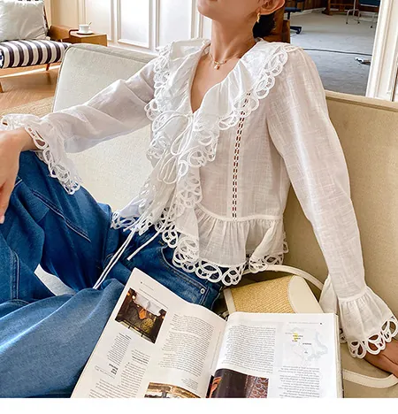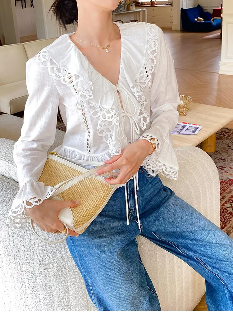 Soft, breathable 100% pure cotton rests gently against your skin when you slip on this blouse. It exudes effortless French Riviera charm, with delicate lace details that add a romantic, breezy feel to every look.
