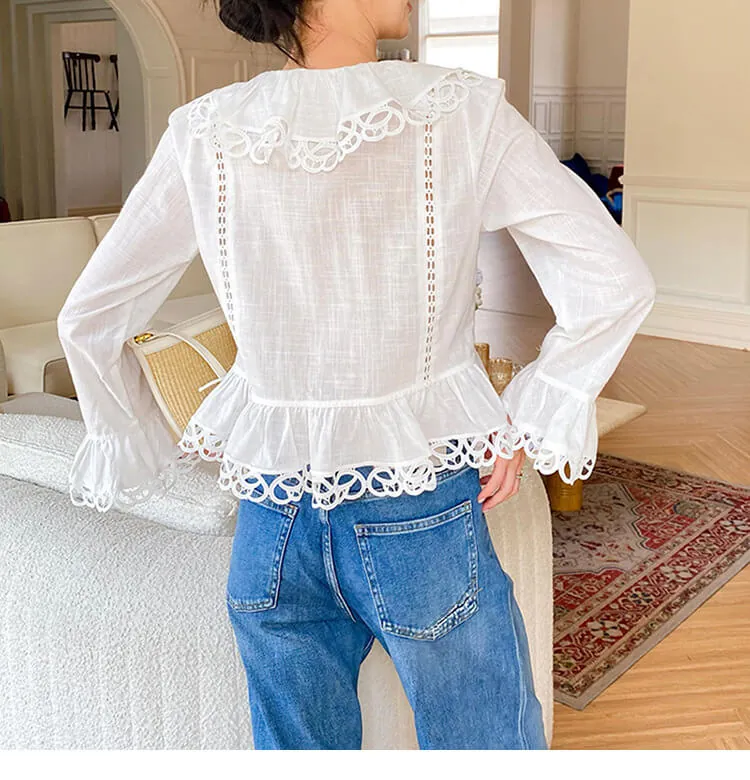 French Riviera Pure Cotton Broderie Anglaise Ruffled Blouse