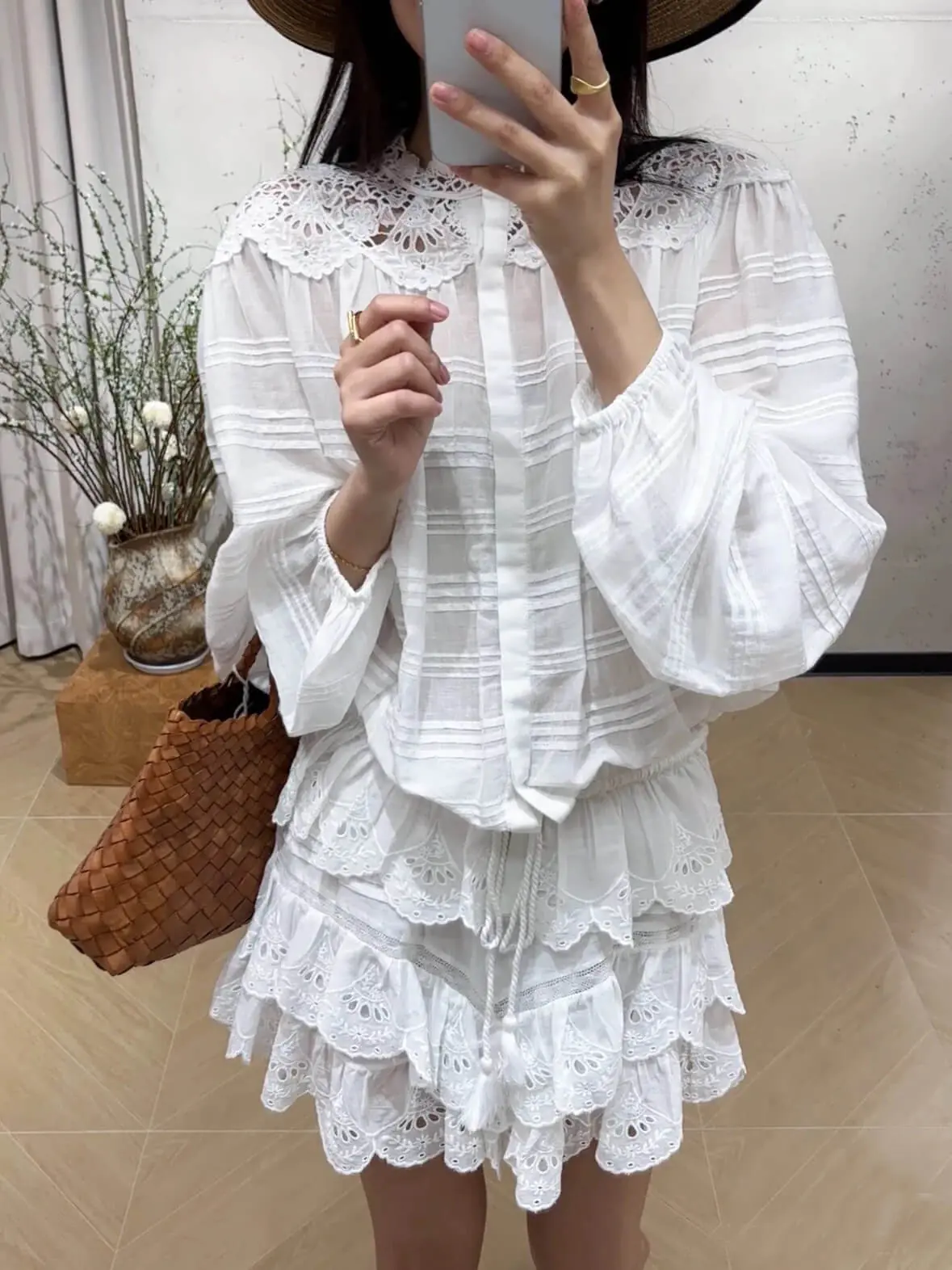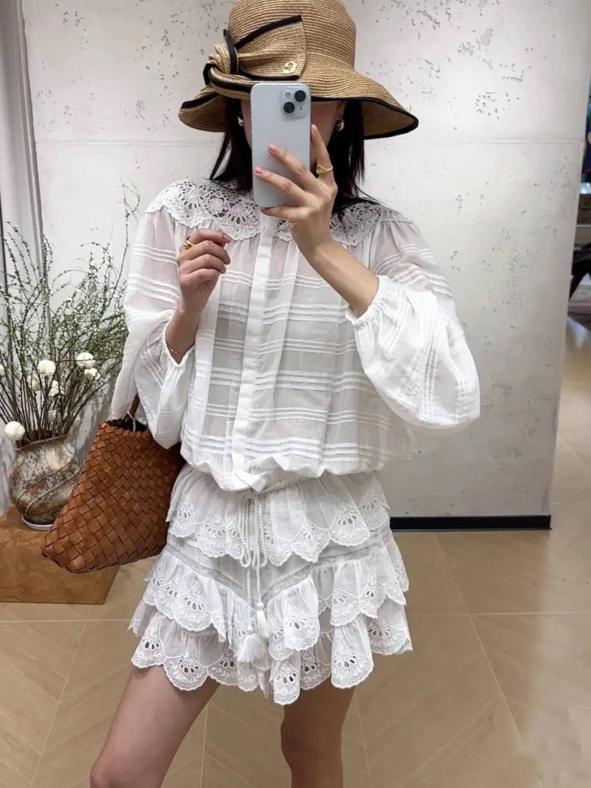 French Riviera White Breathable Cotton Broderie Anglaise Mini Skirt
