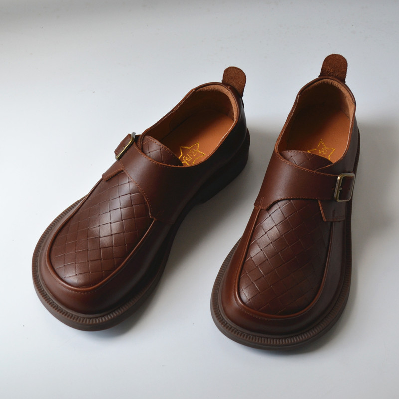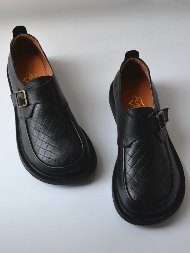 Front Buckle Retro Leather Wide Toe Box Loafers Loafers