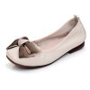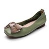 Genuine Leather Female Flat Shoes Bow Square Head Fashion Shoes Spring Soft Comfortable Shoes Woman Flats