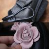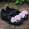 Handmade Flower Retro Leather Flats Black Flat Shoes - Image 4