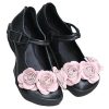 Handmade Flower Retro Leather Flats Black Flat Shoes