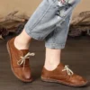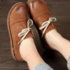 Handmade Leather Lace Up Round Head Flat Shoes Flat Shoes - Image 6