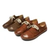 Handmade Leather Lace Up Round Head Flat Shoes Flat Shoes - Image 3